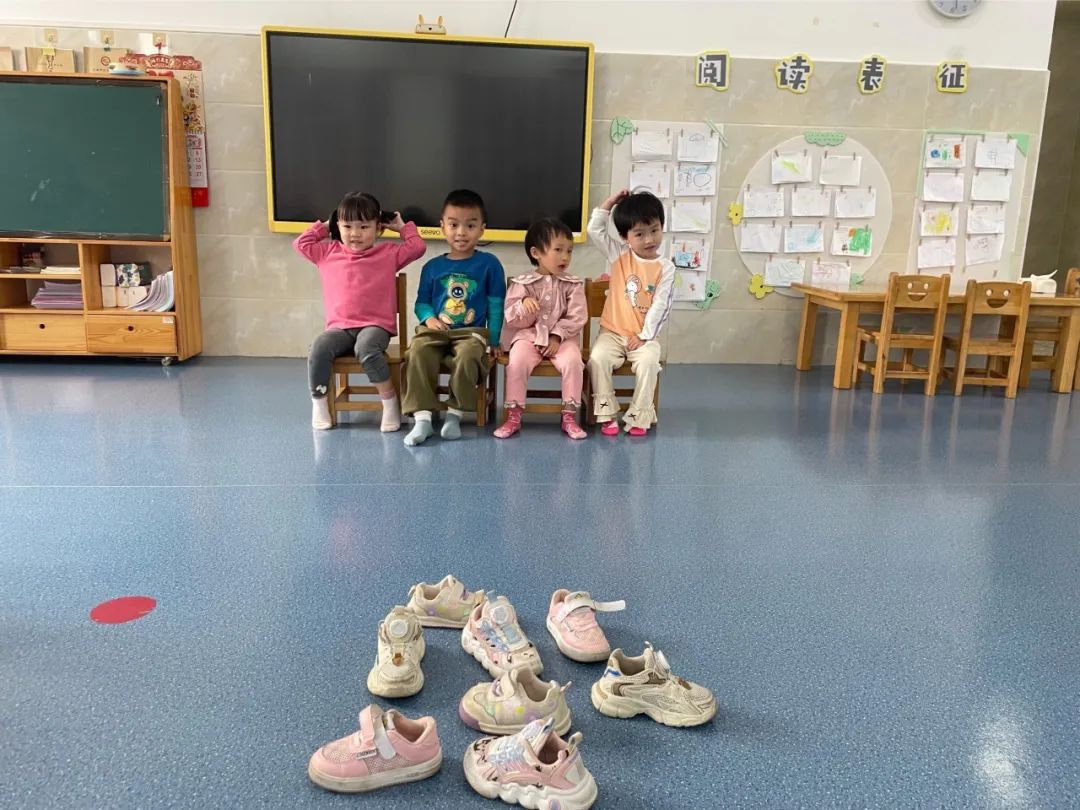 通过一段时间的探索后,小三班的小朋友一起来进行穿鞋大比拼,看看谁能又快又准地把鞋子穿好!