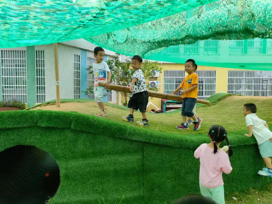 1.幼儿利用搬运图式,将梯子和长木板搬来运用,在搬运过程中,相互合作。