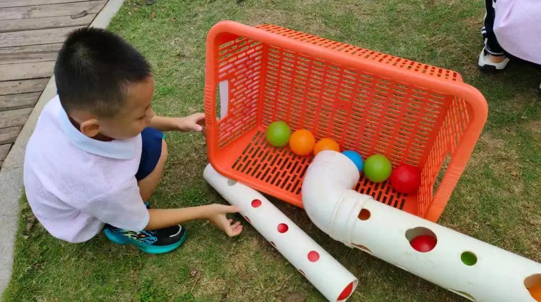 在游戏中,幼儿通过不断尝试改变PVC管,让海洋球能自主从顶部顺利滑倒底部,而且能自己寻找材料解决游戏中的问题,作为老师,应该观察记录幼儿游戏中每个细节过程,分析幼儿的能力发展,为下次游戏分析奠定基础。