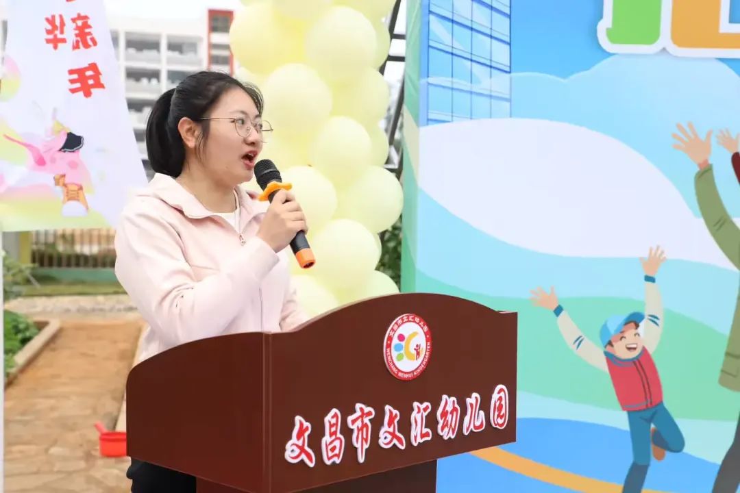 在明媚的阳光中,在湛蓝的天空下,黄薇园长为本届运动会致辞。首先感谢家长朋友们百忙之中参与本次运动会,她强调了亲子运动会的重要意义,希望每一位孩子发扬爱运动,敢挑战的运动精神,体验运动的快乐。