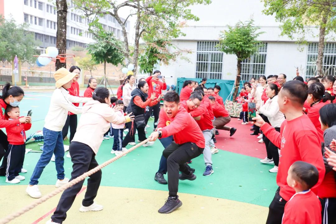在今天的众多项目中,拔河比赛无疑成为了全场瞩目的焦点。这是一场力量与策略的较量,他们齐声高喊口号,步调一致地拉动绳子,体验着力量的比拼。两边的啦啦队也不甘示弱,加油声、呐喊声此起彼伏,响彻整个幼儿园。