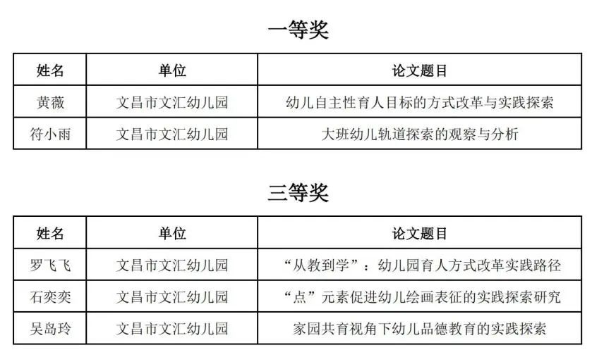 在2025年度文昌市幼儿园保育教育质量提升实验区1+N项目论文评选中,我园教师凭借扎实的专业素养和出色的研究能力斩获佳绩,特此报喜!