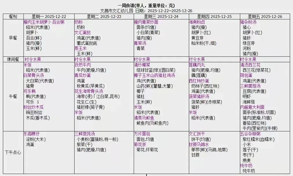 下周食谱