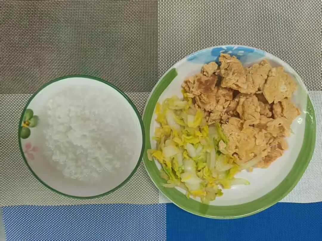 白粥、煎蛋、娃娃菜