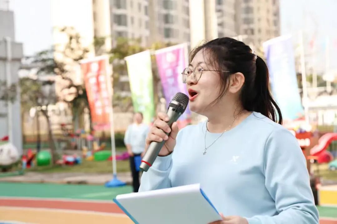 黄薇园长为本次小班亲子运动会致辞,她代表全体教职工向到场家长致以热烈欢迎与衷心感谢,希望通过活动增进亲子情感,帮助孩子们增强体质、锤炼意志,培养合作意识与自信心,并祝愿运动会圆满成功。