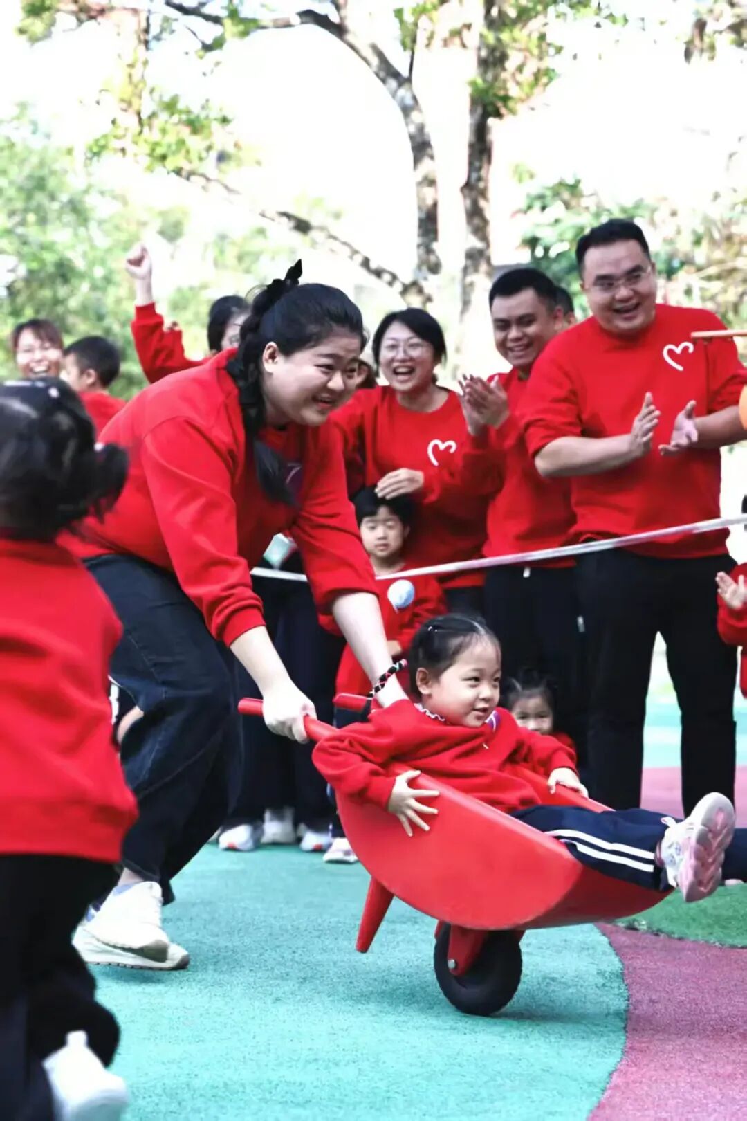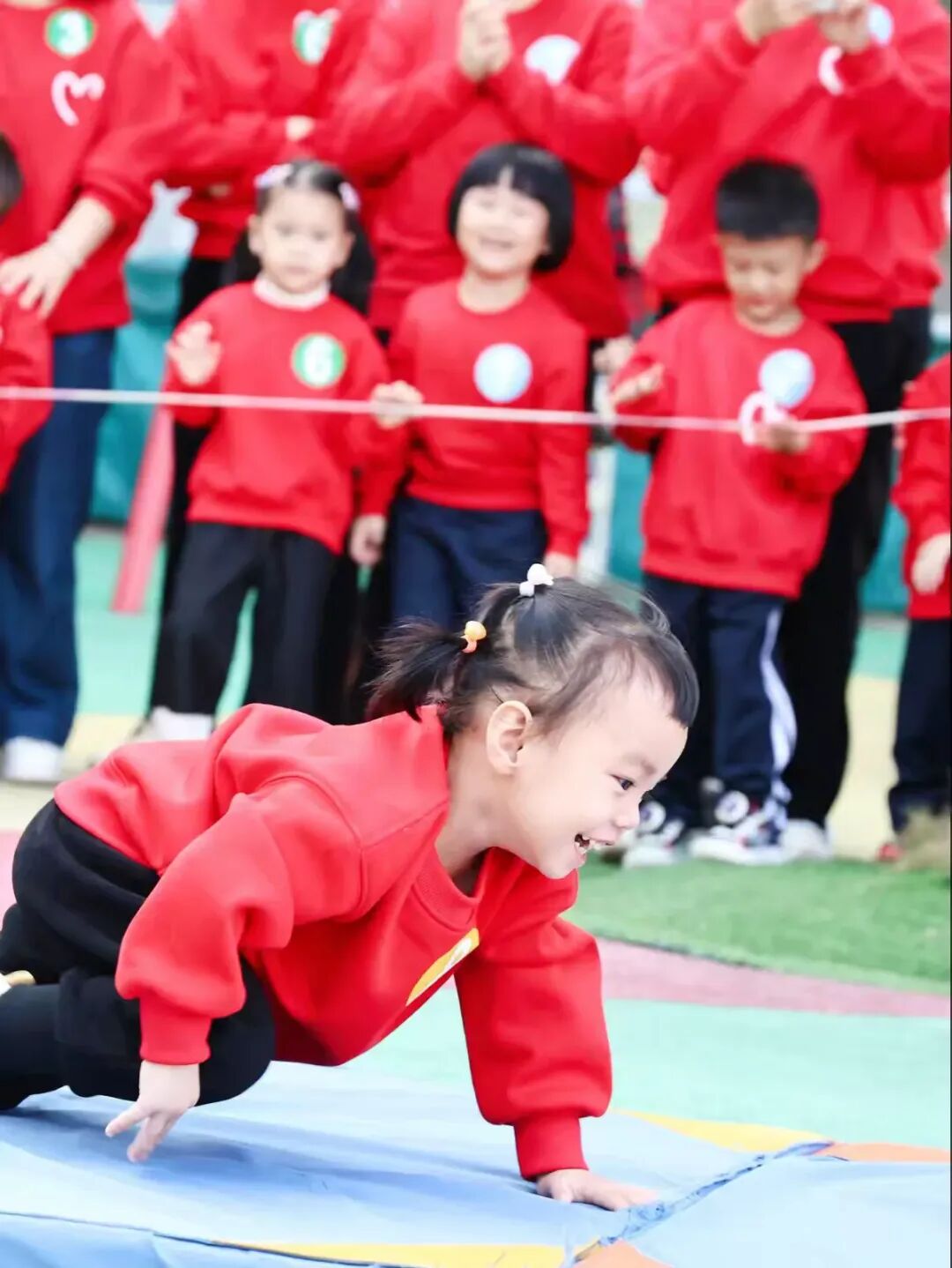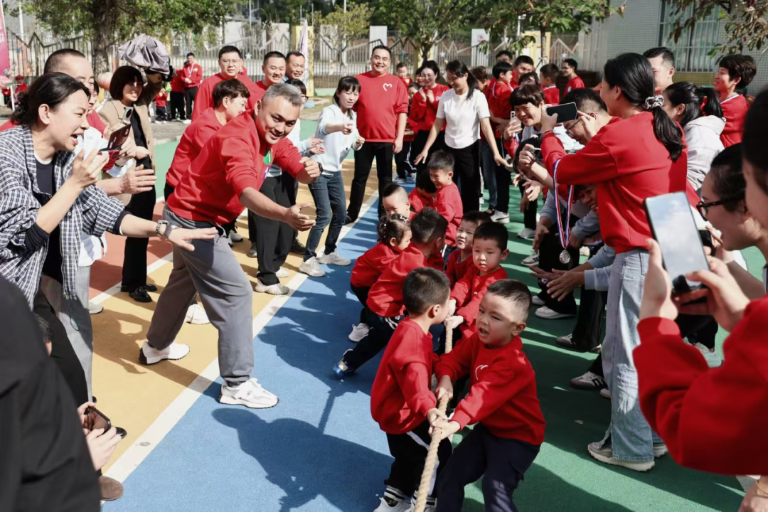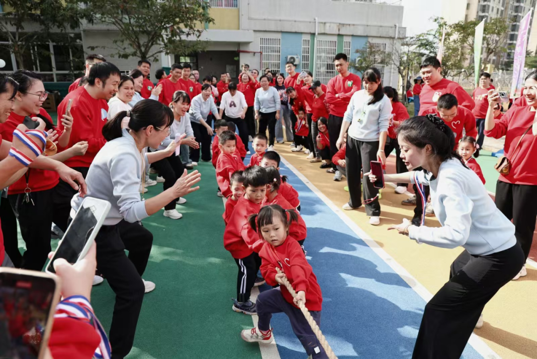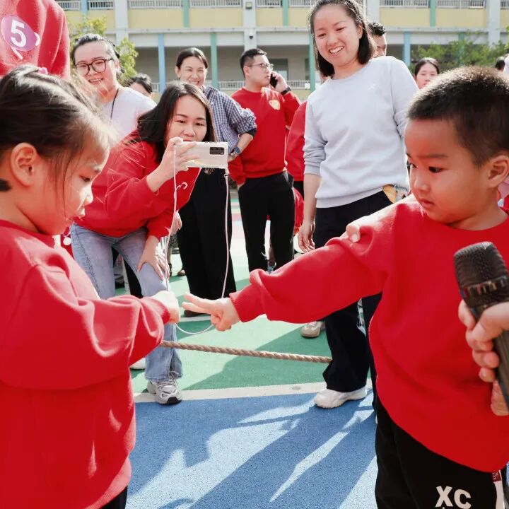 最令人期待的幼儿拔河比赛里,小选手们紧紧攥住绳子,小脸憋得通红,使出浑身力气往后拉,这份稚嫩的坚持引得在场所有人纷纷喝彩。