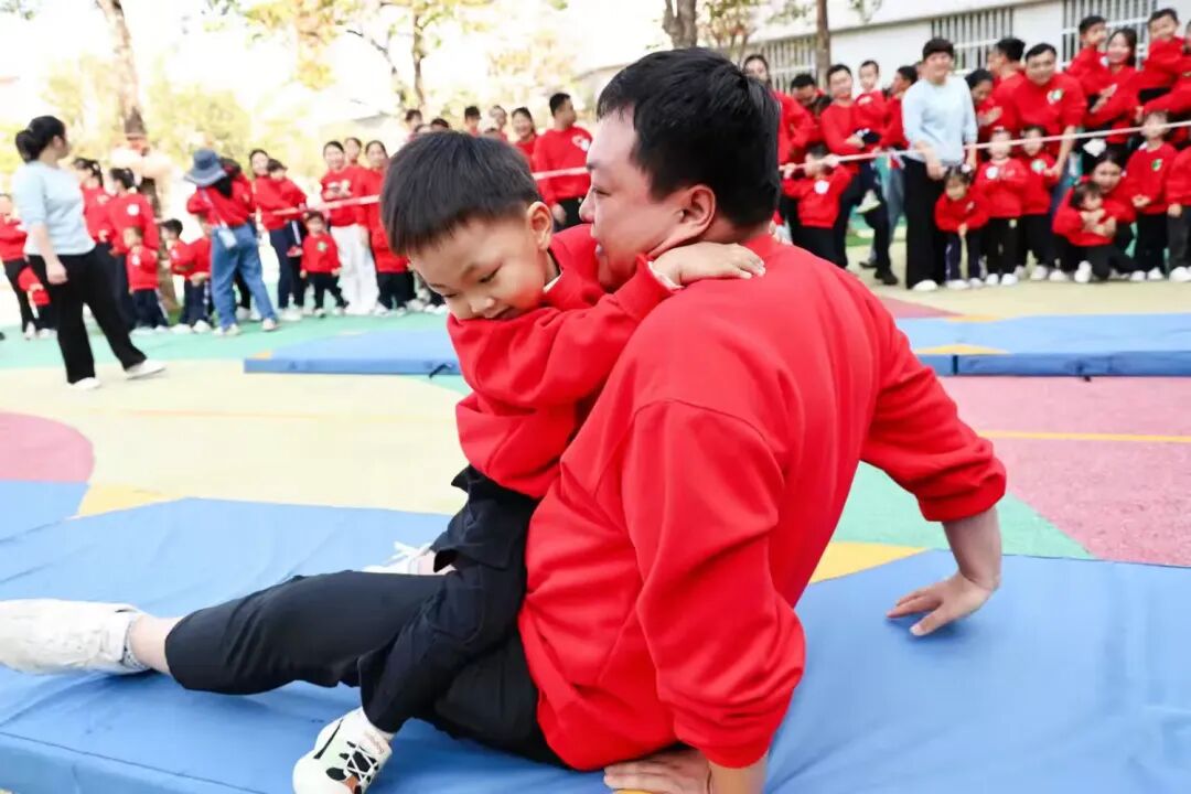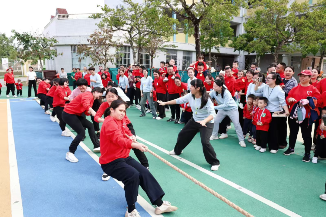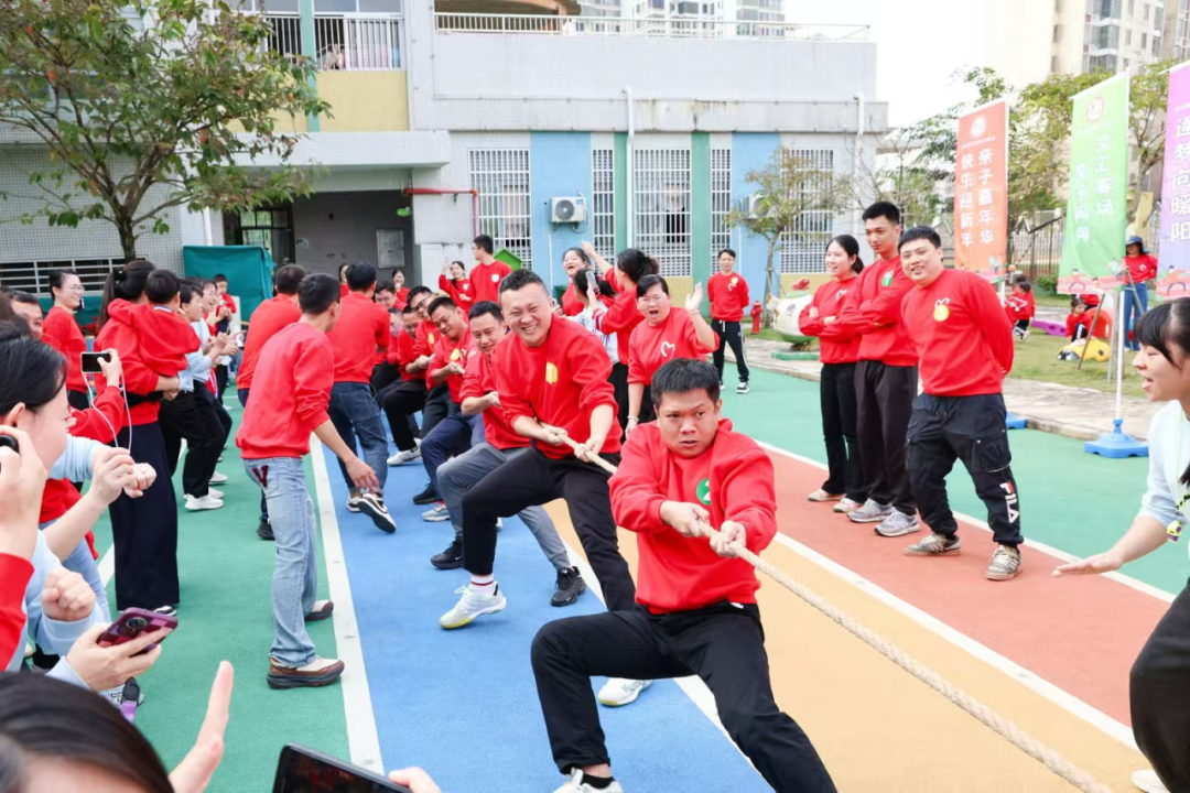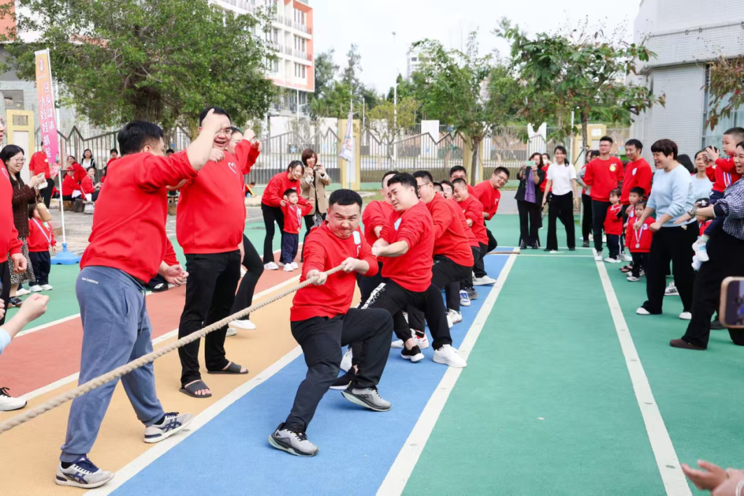 爸爸们的拔河环节更是看点十足,爸爸们铆足力气、奋力拉扯,尽显满满的力量感。