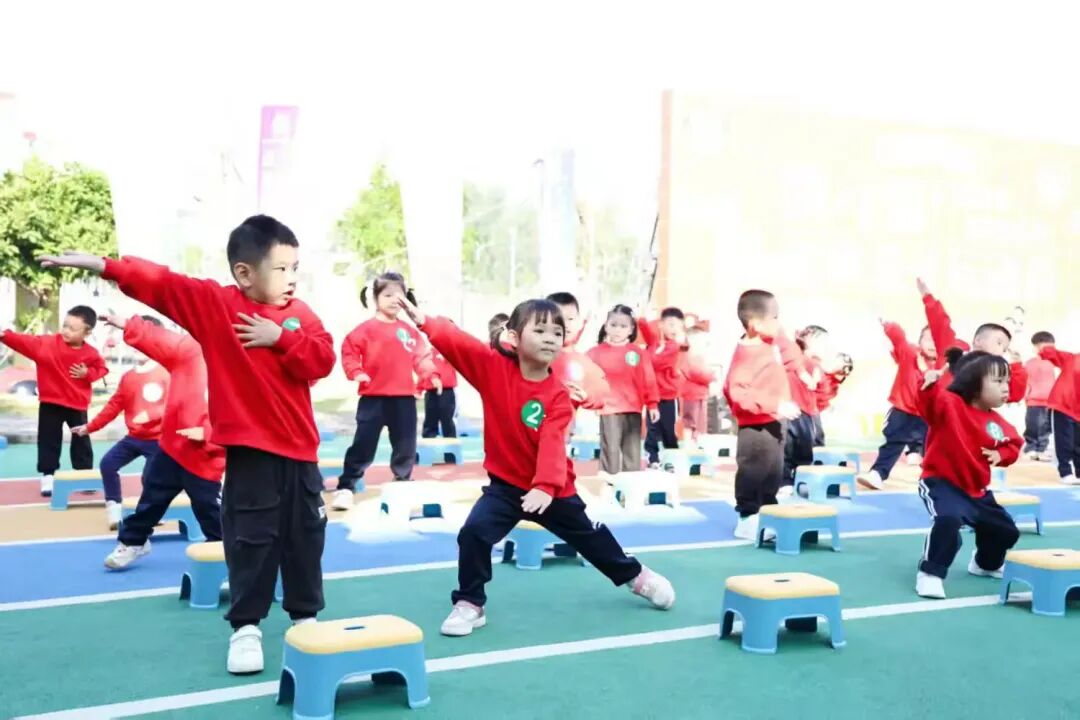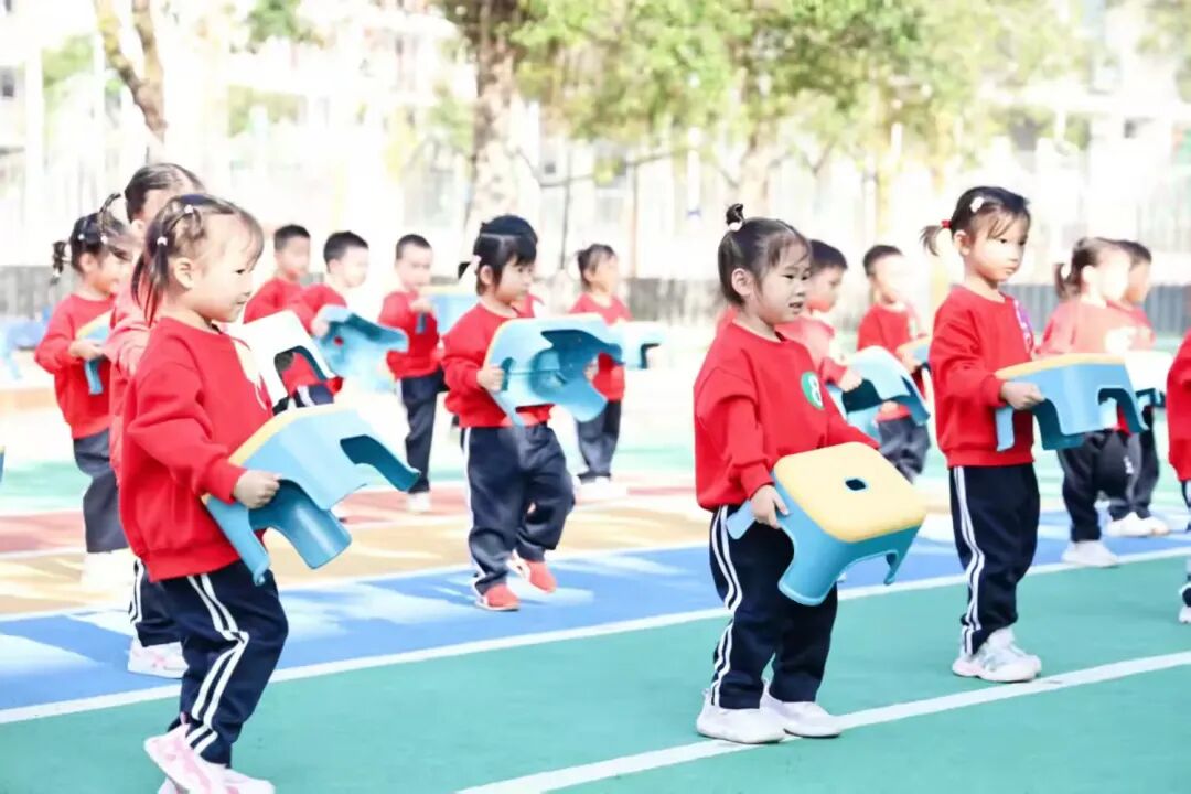 小班凳子操萌趣满满。音乐节奏轻松欢快,十分契合小班幼儿的特点。孩子们双手握住轻盈的凳子,微微举起,脸上洋溢着纯真的笑容,仿佛一个个可爱的小天使在展示自己的力量。随着音乐推进,宝贝们有节奏地上下摆动凳子,稚嫩的手臂虽然力量有限,但每一次挥动都充满了认真与努力,锻炼着手臂的肌肉力量,充分展现出萌宝们的无限活力与天真烂漫。