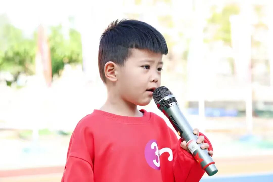 小一班赵知予小运动员,以铿锵有力的声音带领全体小朋友喊出倡议口号:“文汇赛场,亲子同闯;跃动成长,温暖绽放!”