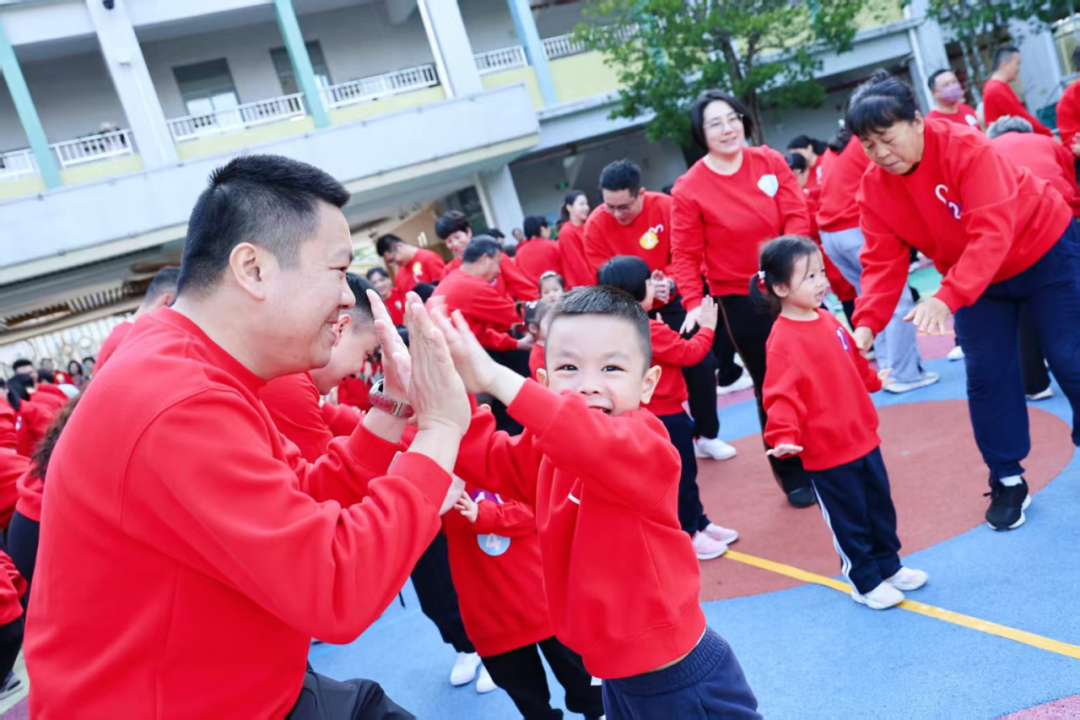 家长们放下平日的忙碌,与孩子手拉手、肩并肩,跟着欢快的音乐尽情舞动。抬手、弯腰的互动间,亲子距离悄然拉近,大家手拉手转着圈圈,现场处处洋溢着欢声笑语。