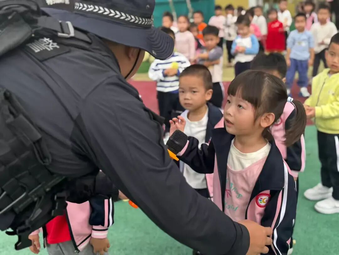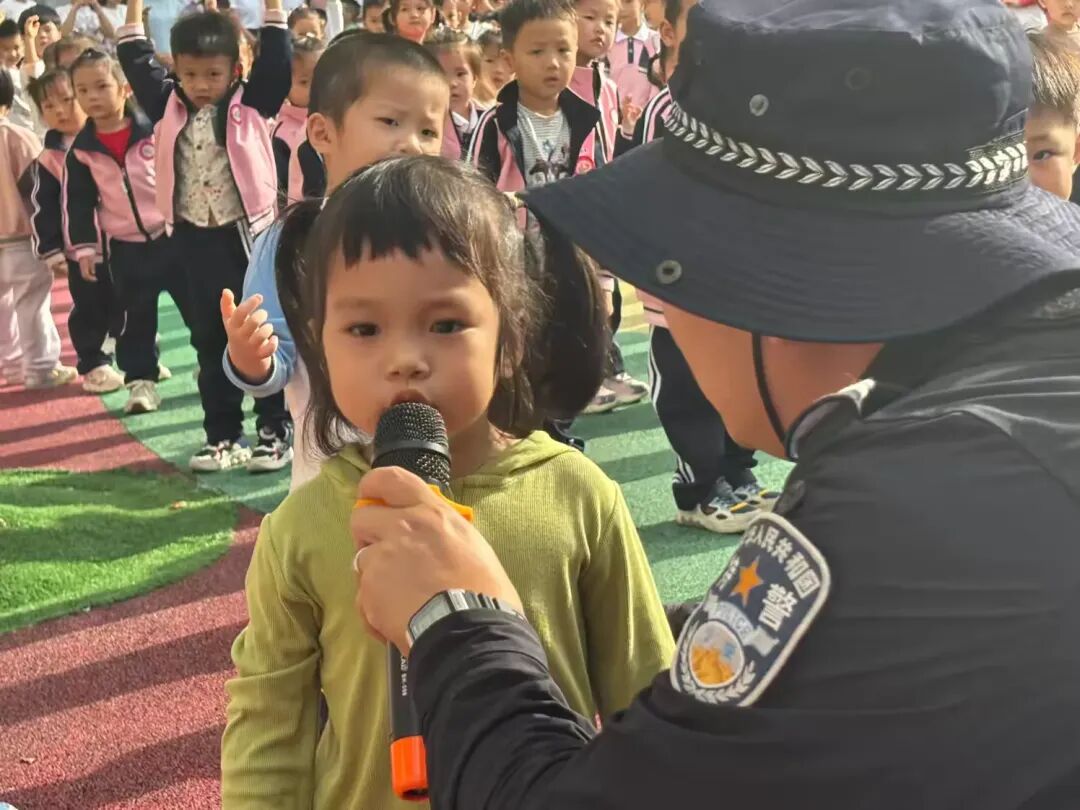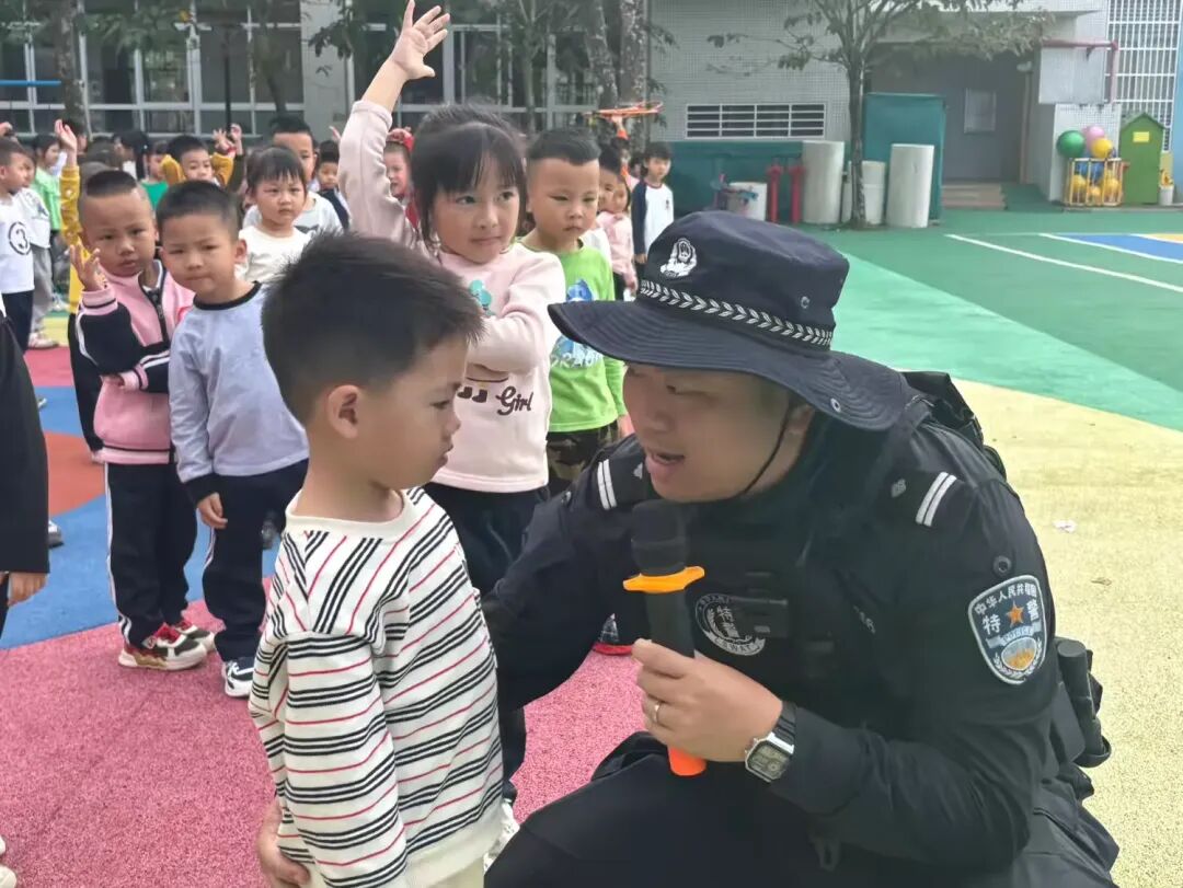 特警大队曾队长结合幼儿年龄特点,通过生动的情景模拟、互动问答等形式,为孩子们开展防拐知识宣讲。