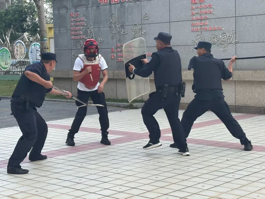 演示过程中,特警队员结合校园可能出现的暴恐场景,讲解了器械之间的协同配合策略,如利用盾牌形成防护屏障,长棍、钢叉配合牵制暴徒行动等。特警队员进行指导,纠正不规范动作,确保每位教职工都能熟练掌握器械使用技巧和协同配合方法。