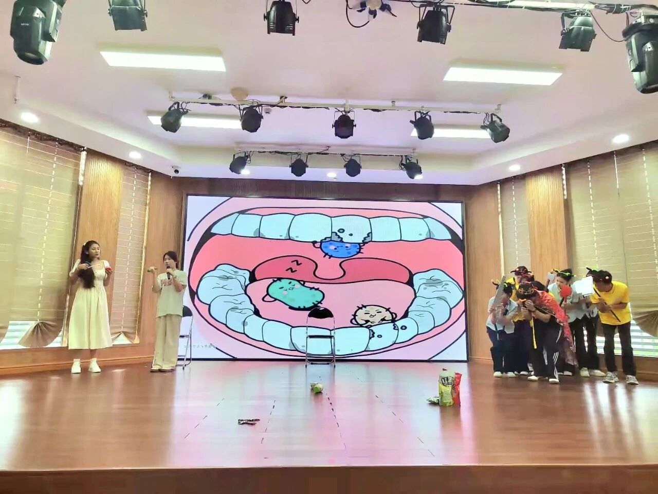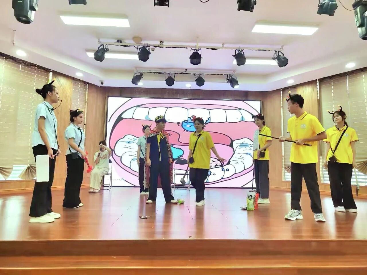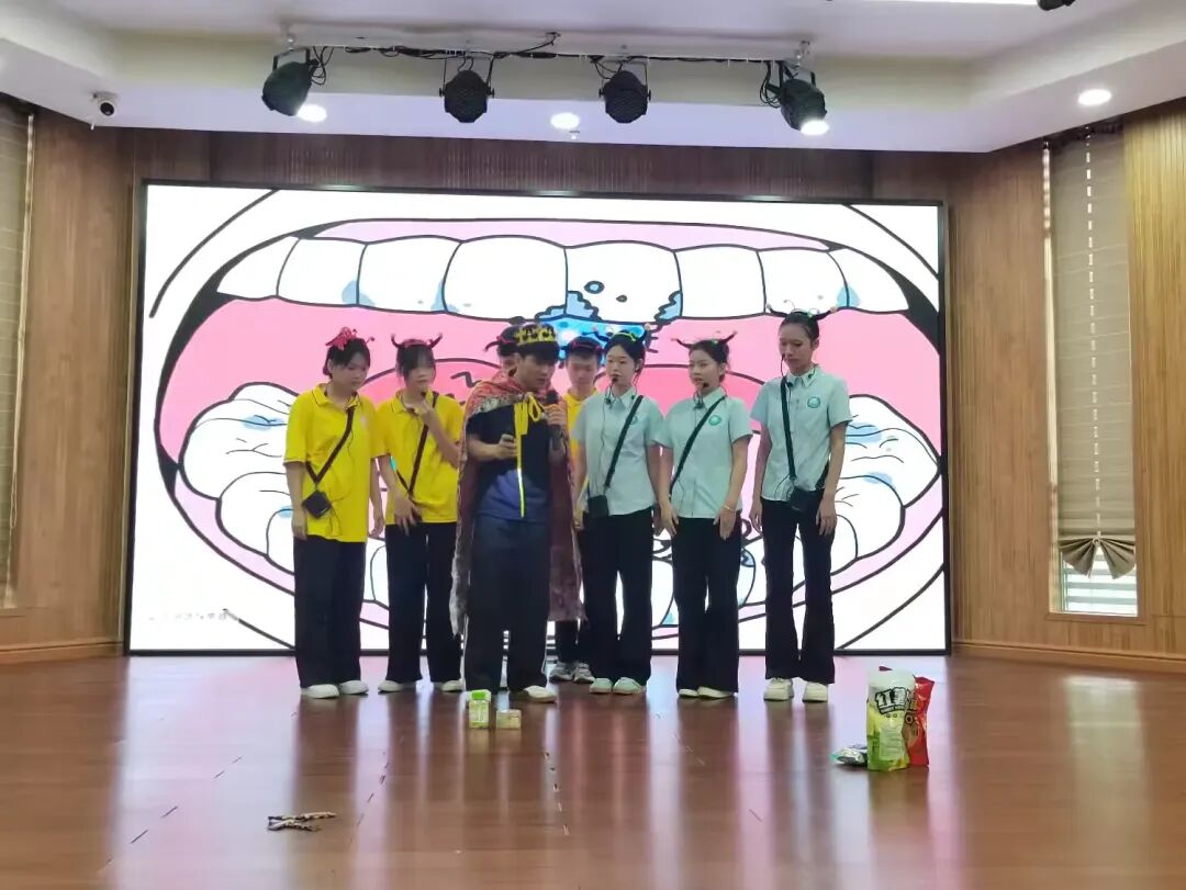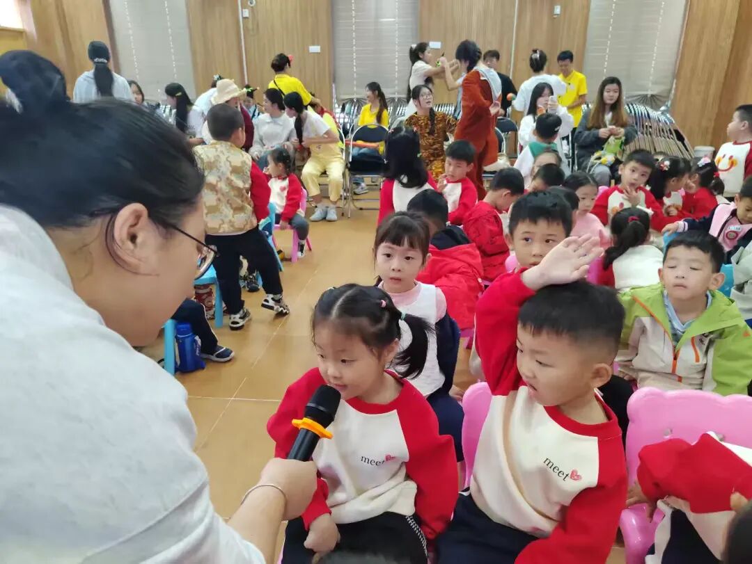 童话剧表演落下帷幕,主持老师立刻和小朋友们开启了热闹互动。大家一起回顾剧情里的冒险站点,重温琼剧、公仔戏等有趣的非遗知识,让传统文化的种子在孩子们心底悄悄扎根。互动中,小朋友们还明白了吃零食不刷牙容易长牙虫的道理。最后所有人跟着欢快的节奏,一起跳起了刷牙舞蹈。