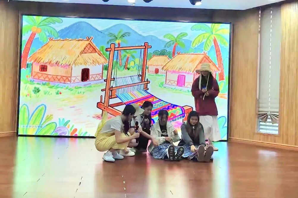 随后,大家奔赴彝族村寨的泥土工坊,了解2019年被列入联合国非遗名录的织锦文化,懂得珍惜与守护传统技艺;还来到热闹的草边集市,聆听传承人讲述编草的古老故事,亲手体验编草的乐趣。冒险尾声,大家回到海边,布袋精灵布奇需留在非遗世界充电告别,而大家满载着非遗故事与收获返程。