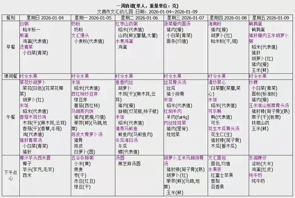 下周食谱