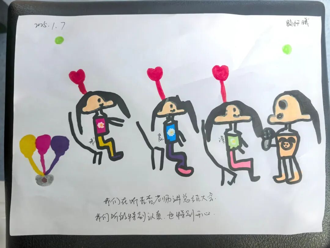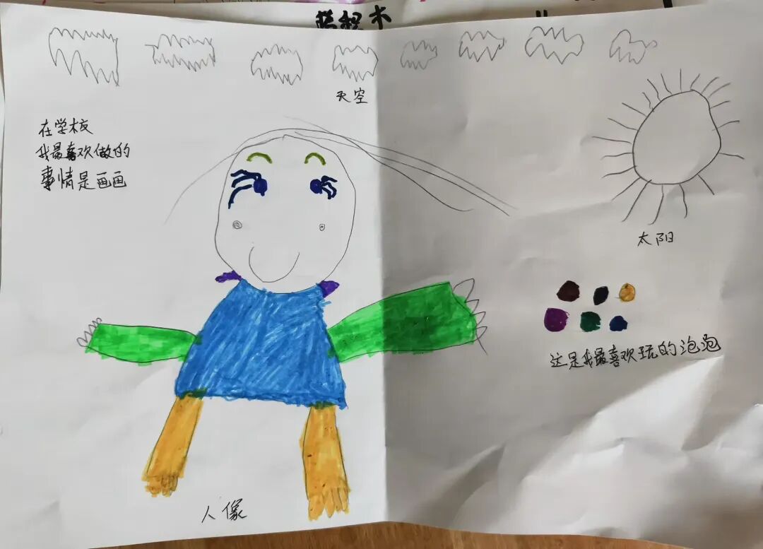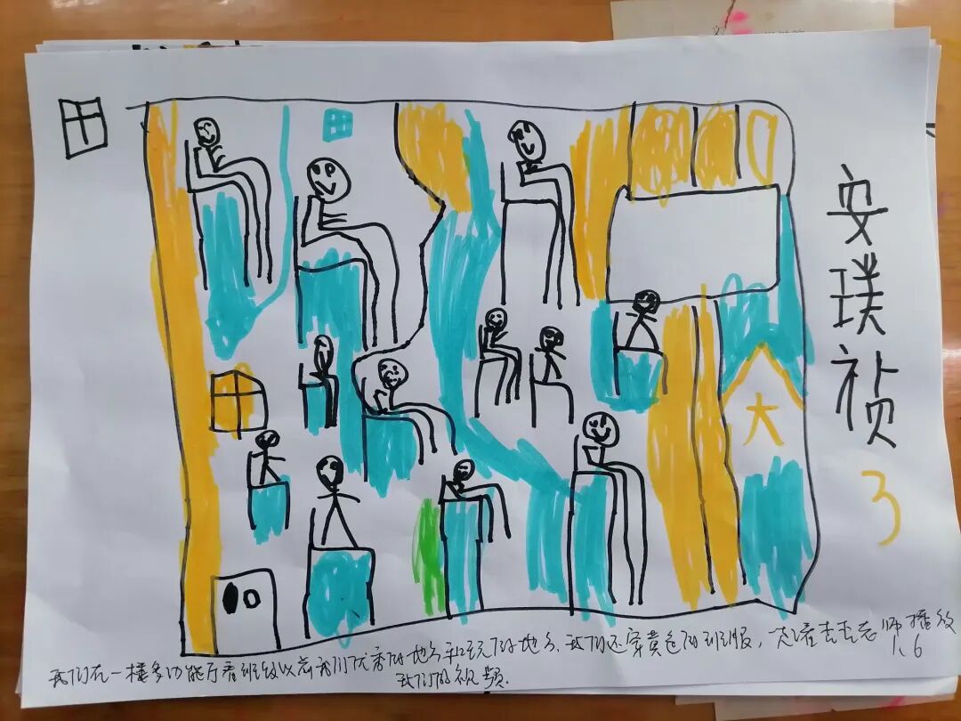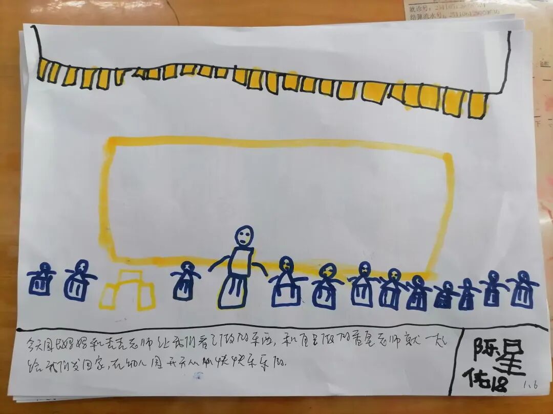 在总结会结束回到班级以后,孩子们拿起画笔,将眼中的星光、心中的暖意,落在纸上——