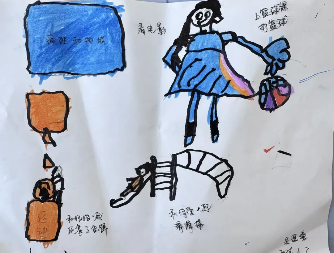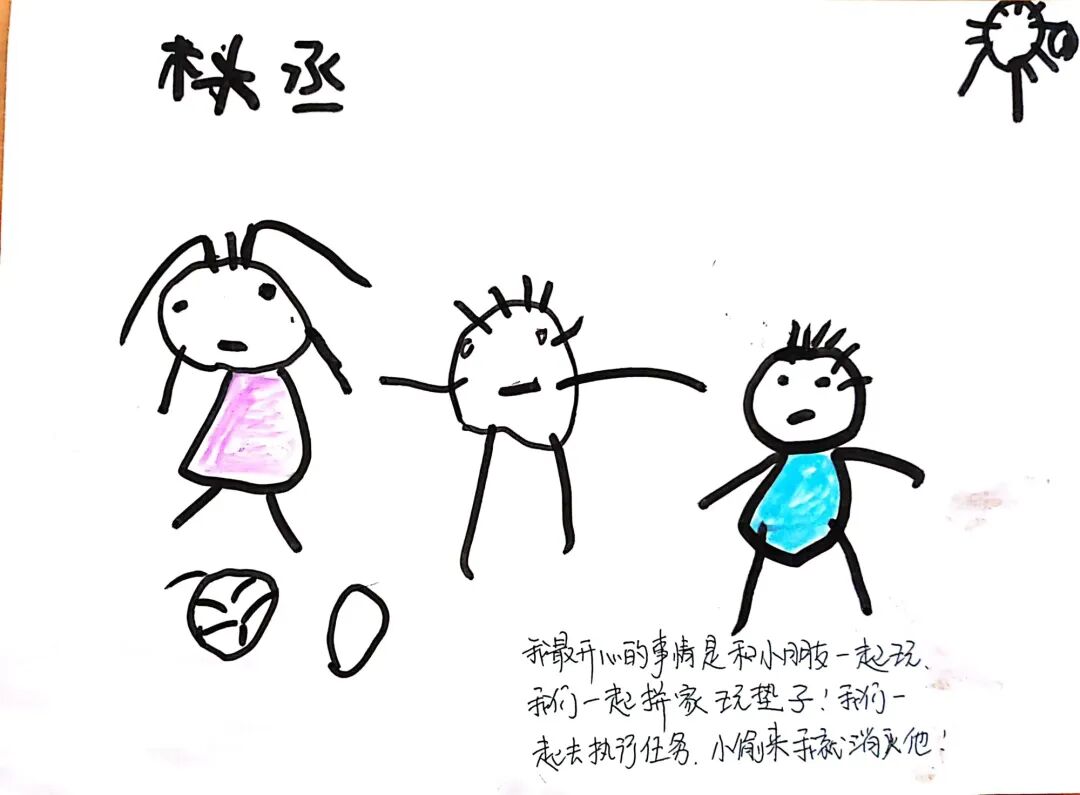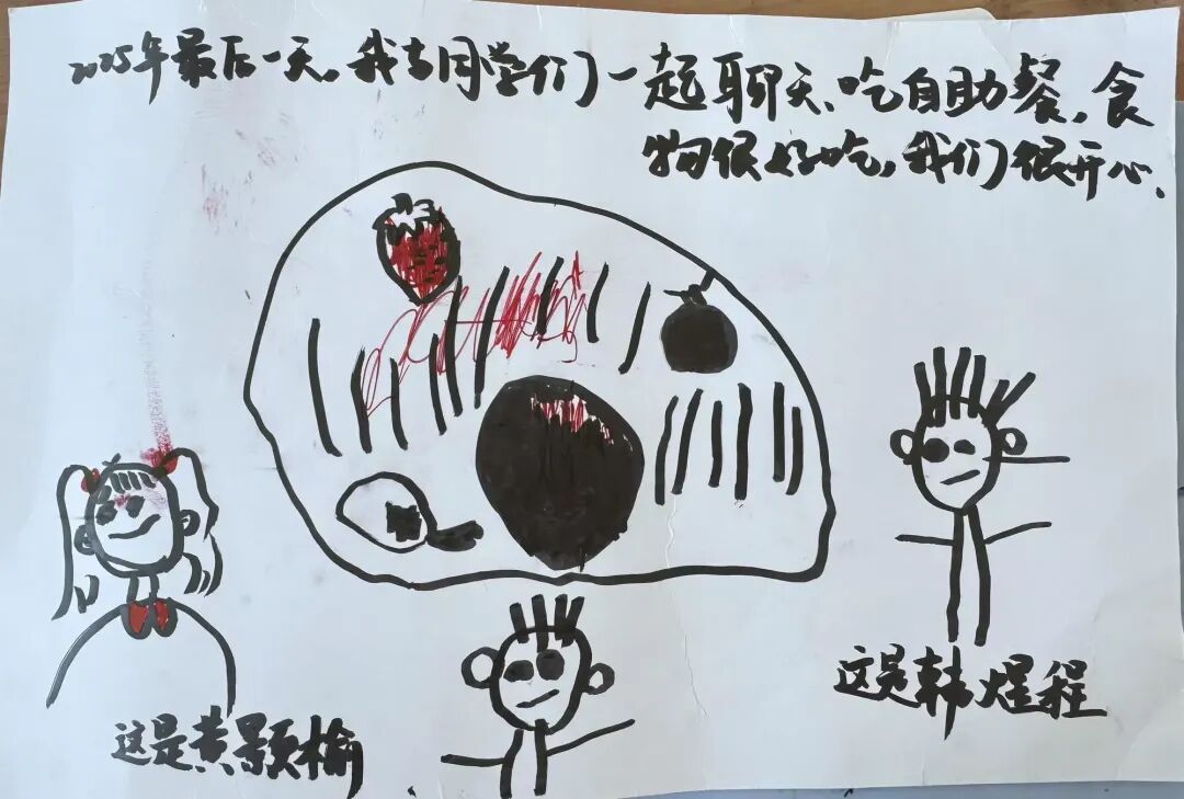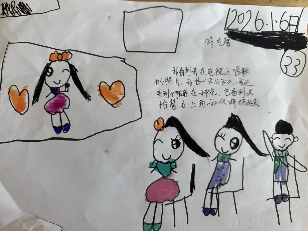 在总结会结束回到班级以后,孩子们拿起画笔,将眼中的星光、心中的暖意,落在纸上——