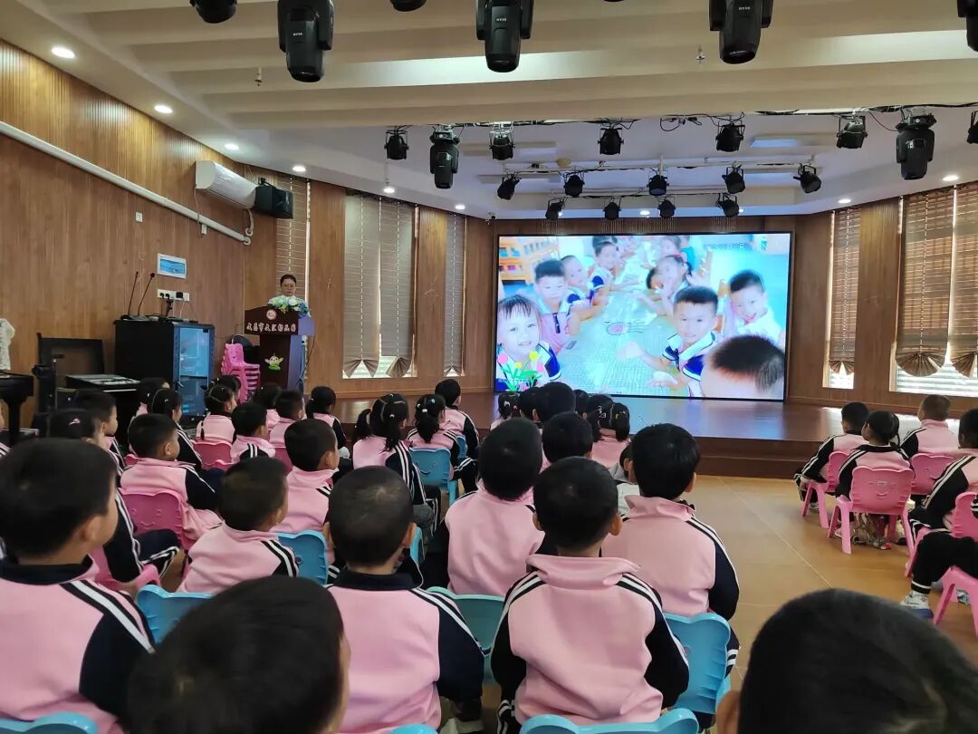 随后,林青副主任用生动形象的语言,搭配色彩鲜艳的活动照片、趣味十足的视频片段,带领孩子们重温在幼儿园的快乐时光:户外游戏时的肆意奔跑、手工课堂上的奇思妙想、生活活动中的点滴进步……每一个画面,都是孩子们成长的珍贵印记。