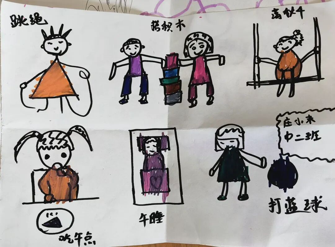 有弯弯的笑脸、牵着的小手、高高的积木塔;