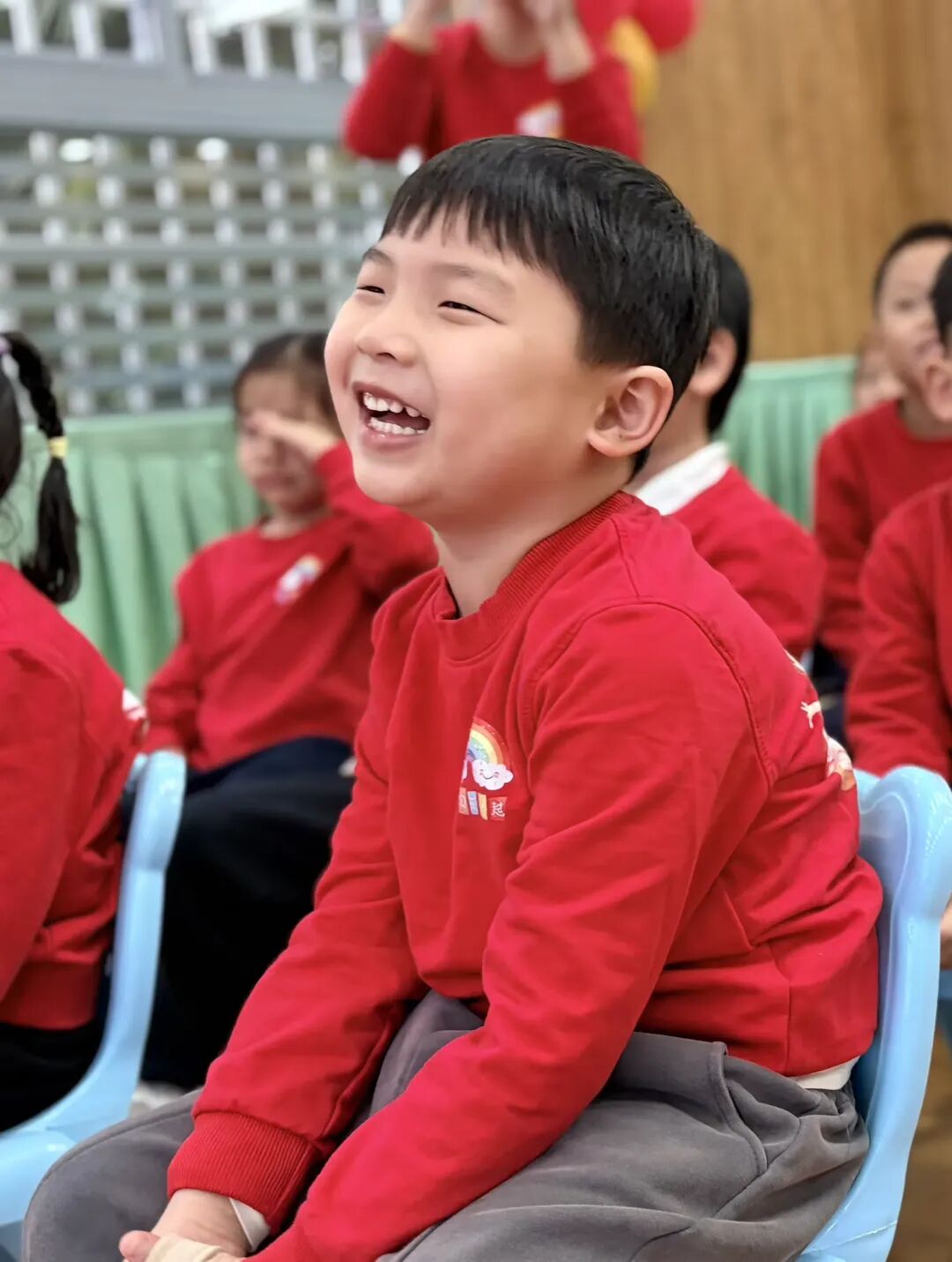 大屏幕上播放的视频,记录着孩子们从刚入园时的懵懂哭闹、紧紧拽着家长衣角不肯松手,到如今能开心地和小伙伴玩耍、独立吃饭穿衣的蜕变过程。运动会上跌跌撞撞的身影、午睡时乖乖盖被子的模样、手工课上沾满颜料的小手……看着视频里自己的可爱模样,孩子们不时发出阵阵清脆的笑声。