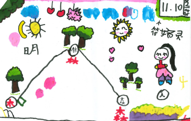 在一次饭后阅读时间,家吉小朋友翻阅了《仓颉造字》绘本,幼儿被古老传说中汉字的起源深深吸引,随后主动完成了阅读表征。在倾听他讲述“字为什么长成这样”的过程中,我仔细观察他的表达方式与思维逻辑,深刻体会到:汉字作为表意文字,具有鲜明的象形特征和意象结构,与幼儿以形象、感知为主的认知特点天然契合。这种视觉与意义相结合的文字体系,不仅能激发幼儿主动观察、比较与表达的内驱力,也为他们今后进入小学的书面语言学习提供了平缓而自然的过渡桥梁。基于这一认识,我决定顺应孩子们对文字符号的好奇心与发展需要,结合《3-6岁儿童学习与发展指南》中关于5–6岁幼儿“喜欢用图画和符号表现事物或故事”及“愿意用图画和符号表达自己的愿望和想法”等书写准备建议,设计并开展了《“字”你相识》主题活动。