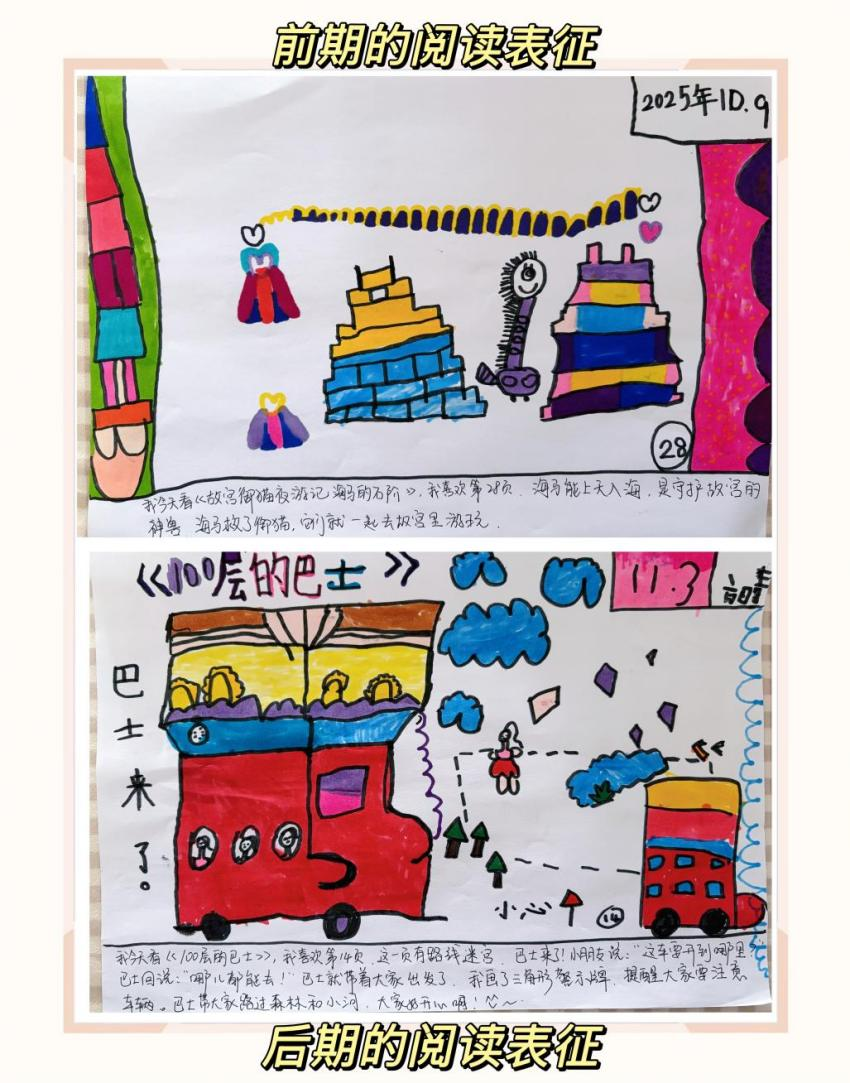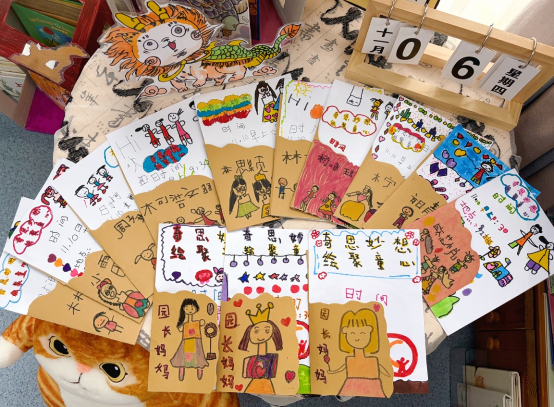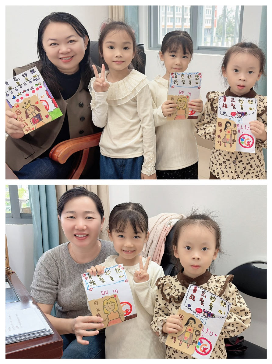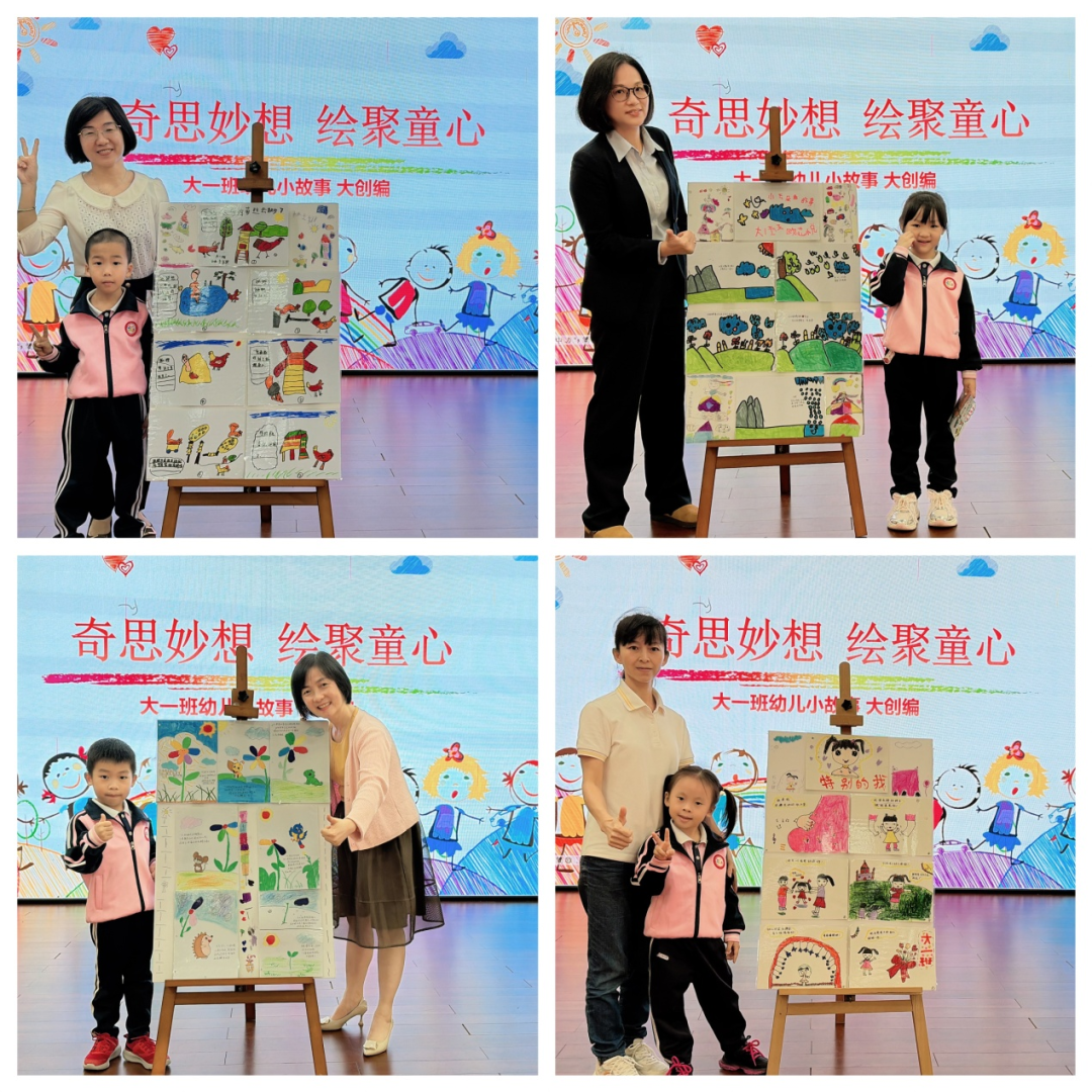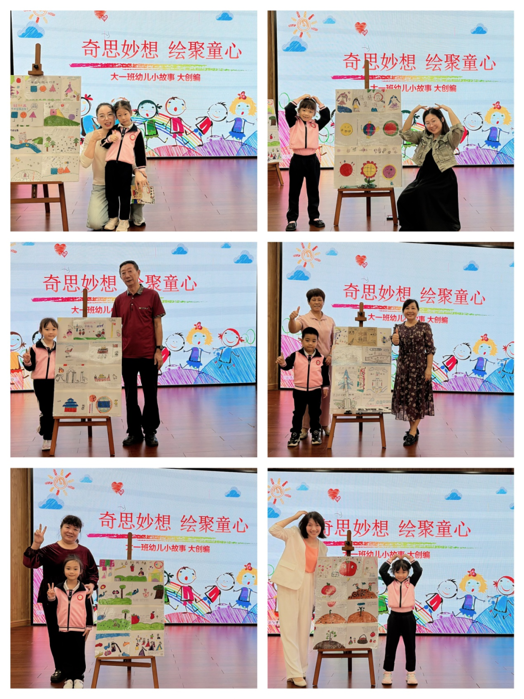 目睹孩子们高涨的创作热情,教师特别策划了以“奇思妙想,绘聚童心”为主题的展示舞台。通过作品展览与互动邀请,家长们直观感受到孩子的进步与成长,逐步摆脱“提前抄写”的认知局限,转为更积极地支持幼儿园开展的亲子阅读、生活化识字等活动,家园共育的合力由此进一步增强。
