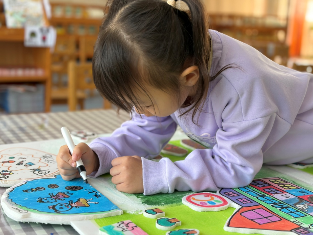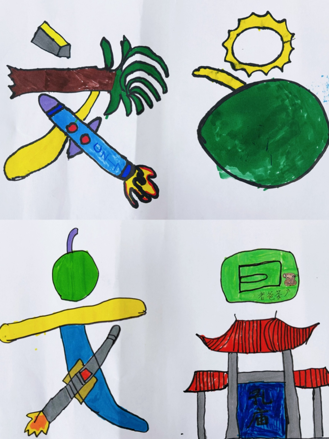 教师创设“本土汉字创意墙”,以文昌本土元素为载体,幼儿便化身文化译者,将家乡关键词与汉字巧意融合。通过这样的引导,儿童既能深入感知本土文化,又能在汉字创作中释放创意,让汉字成为表达家乡特色的生动载体,在文化传承与艺术表达的双重维度中实现成长。