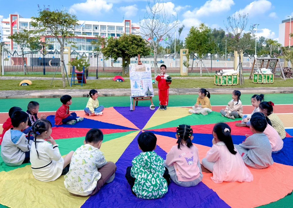 不仅如此,幼儿自主升起举办“草坪绘本”的想法,当绘本从室内延伸到户外,阳光、绿草与孩子们的笑声便编织出别样的成长图景。阳光,宛如柔和的聚光灯,倾洒而下;草地,则像是大自然铺就的绿色绒毯,成为了绝佳的舞台。每一次户外的分享,都是一次勇气的锻炼;每一次与自然的亲近,都是一次认知的拓展。在这里,童真不被局限,成长如破土的新芽,在自由与互动的土壤里,蓬勃向上,绽放出最明媚的光彩。