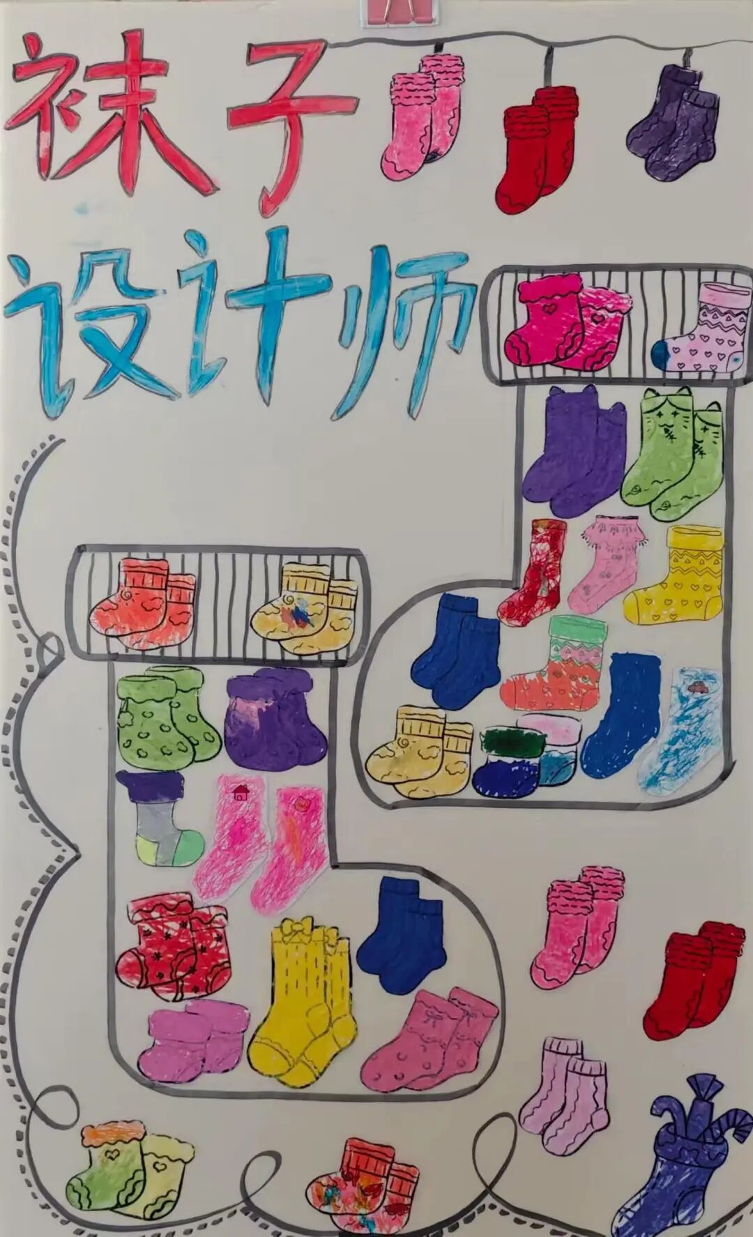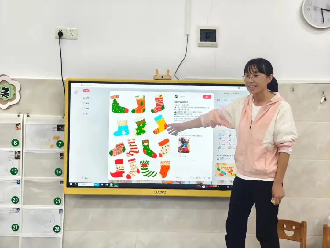 开展“袜子设计师”手工活动,提供白色袜子、彩笔、贴纸等材料,幼儿发挥想象力设计独特袜子。完成后展示作品并介绍设计特点。