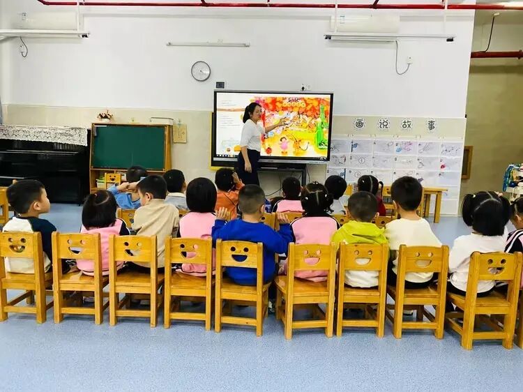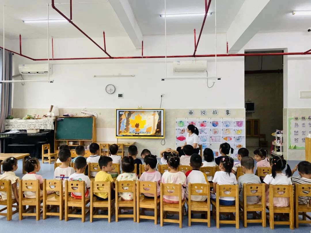 在温馨的教室里,孩子们和老师一起翻开了《落叶跳舞》《落叶市集》等精彩的绘本。绘本中那些形态各异的落叶,在作者的笔下变成了一个个活泼可爱的小精灵,它们在秋风中欢快地跳舞,举办热闹的市集。孩子们被这些有趣的故事深深吸引,他们睁大眼睛,专注地听着老师的讲解,时而发出欢快的笑声,时而露出惊讶的表情。