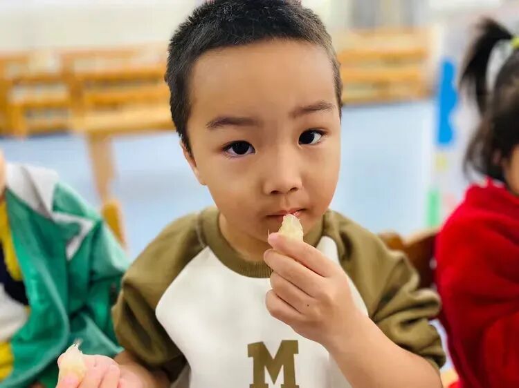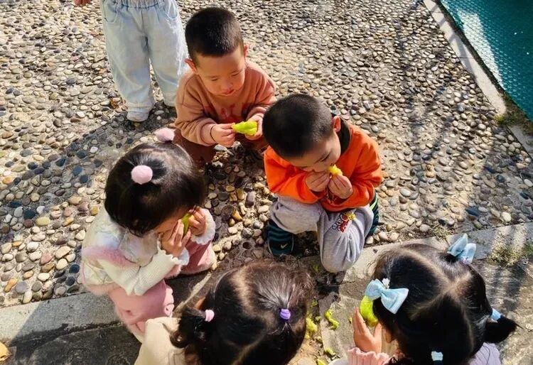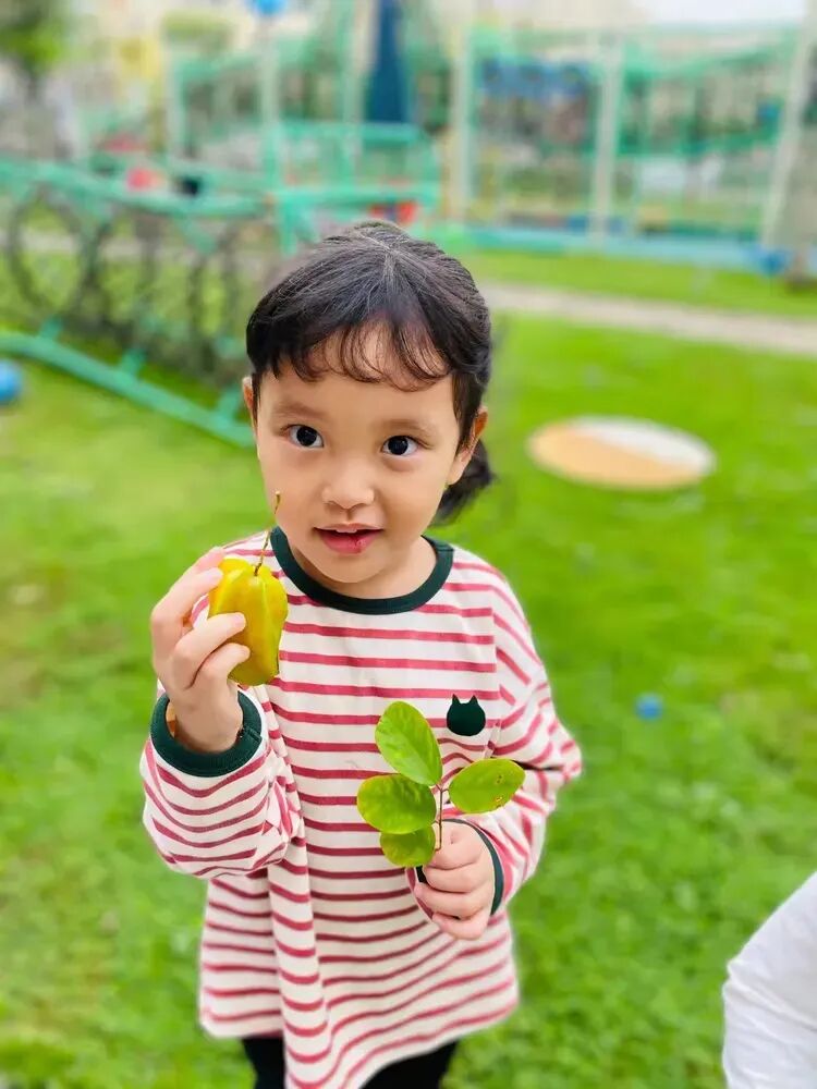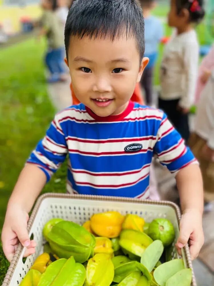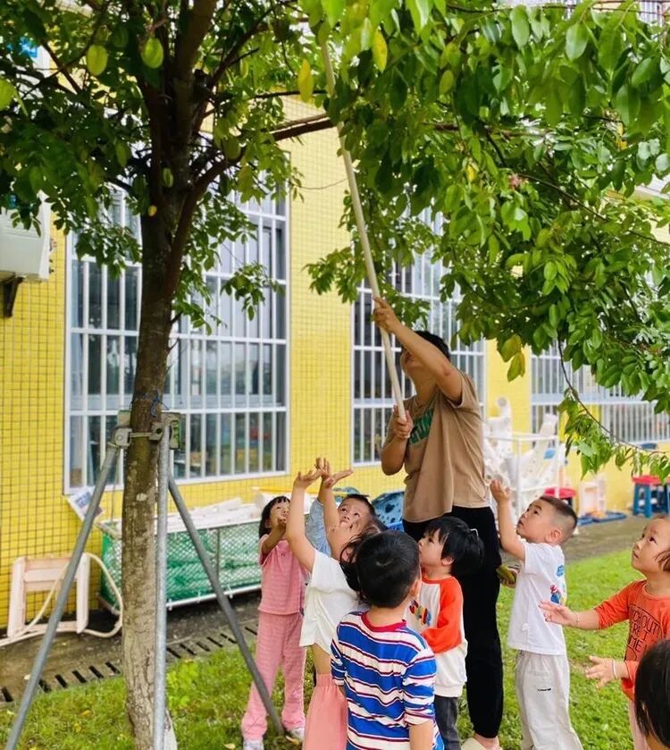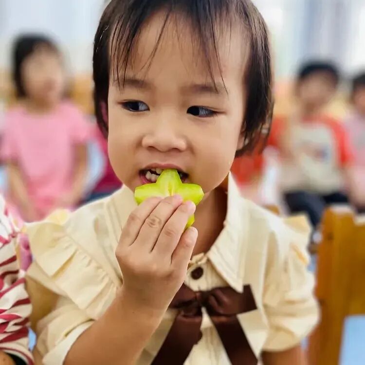 摘完杨桃后,孩子们迫不及待地用手接着老师洗好的杨桃,放进嘴里品尝起来。“杨桃好甜啊!”“有点酸,但是很好吃!”孩子们一边吃着杨桃,一边分享着自己的感受。
