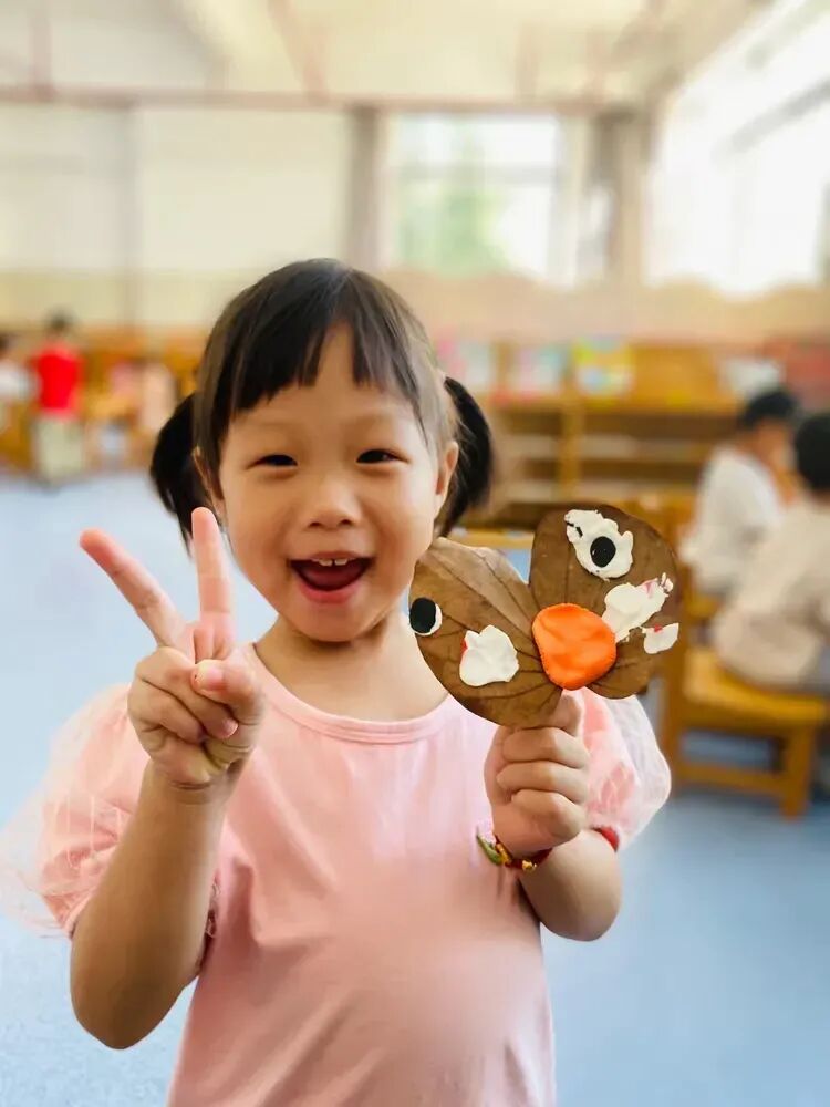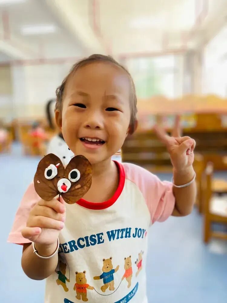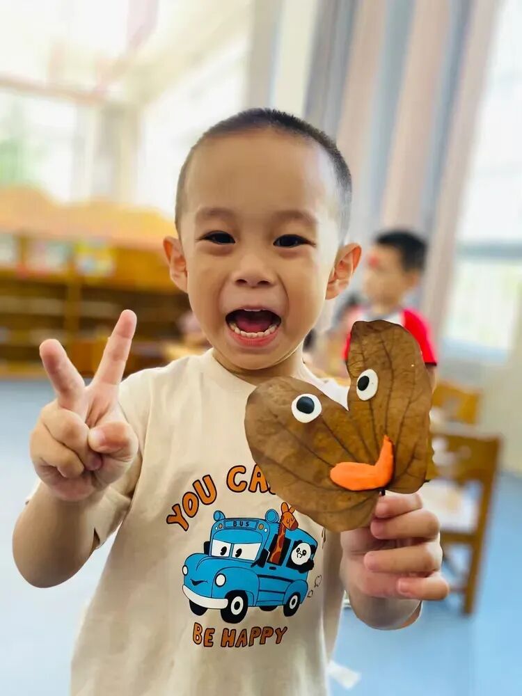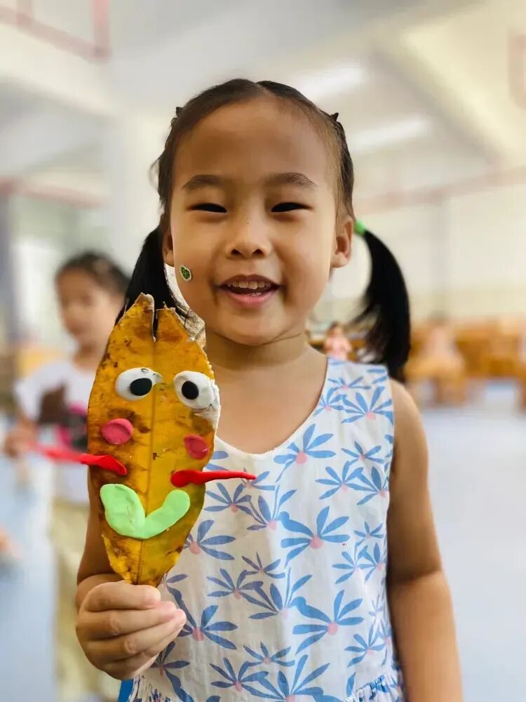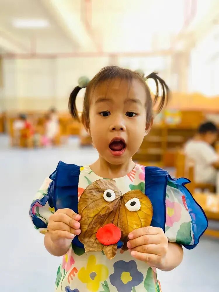 回到教室,孩子们用捡来的落叶和五彩的粘土,发挥自己的想象力,制作出了一幅幅独一无二的手工作品。每一件作品都充满了童真和创意。