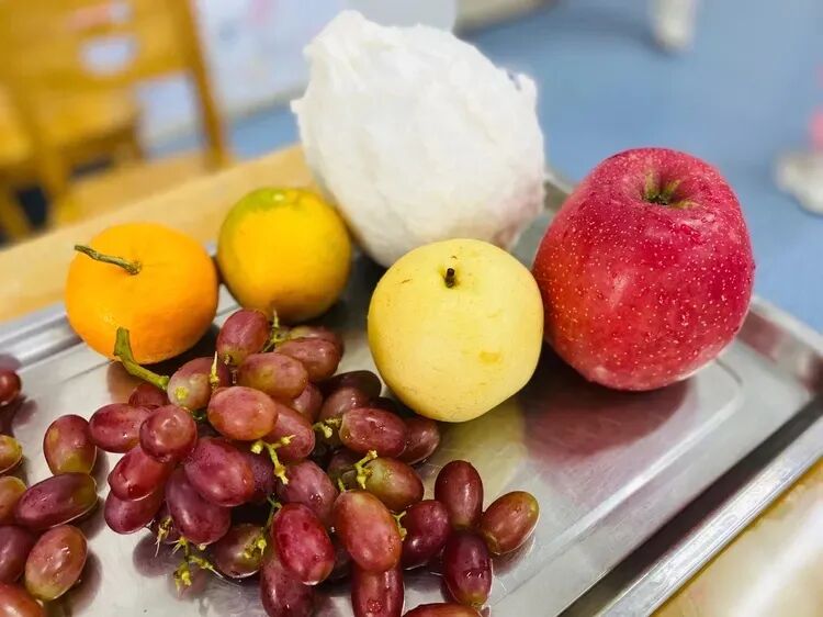 秋天是一个丰收的季节,果园里、田野里到处都洋溢着丰收的喜悦。在《秋天的果实》活动中,孩子们认识了各种各样秋天丰收的水果、蔬菜和瓜果。红彤彤的苹果、黄澄澄的梨子、紫莹莹的葡萄,还有很饱满的玉米、胖乎乎的南瓜……孩子们看着这些色彩鲜艳、形态各异的果实,忍不住伸出小手摸一摸,放在鼻子前闻一闻、尝一尝,感受着大自然的馈赠。