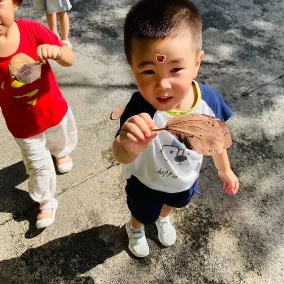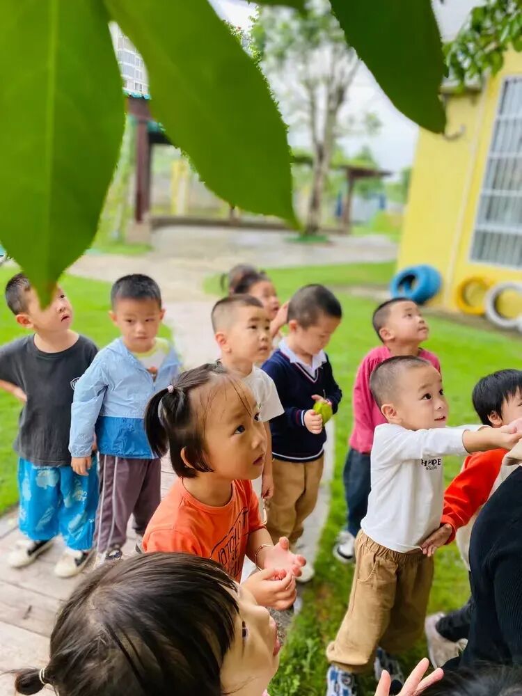 在《认识秋天》的活动中,孩子们像一群欢快的小探险家,在幼儿园的每一个角落寻找秋天的印记。他们睁着亮晶晶的眼睛,好奇地观察着周围的变化。