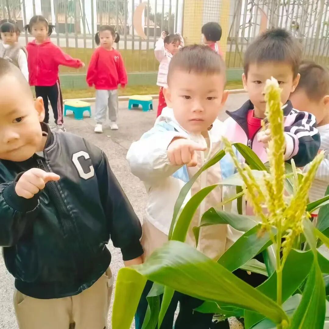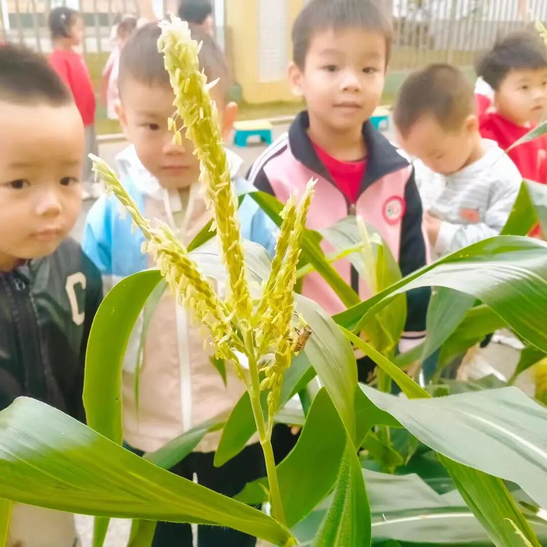 晨练时间,种植区的玉米地中飞舞的蜜蜂引起了孩子们的注意。我们带着孩子观察蜜蜂采蜜的样子,通过观看动画、聆听故事,进一步认知蜜蜂的分工、蜂巢的构造,以及蜜蜂对植物传播花粉的重要作用。