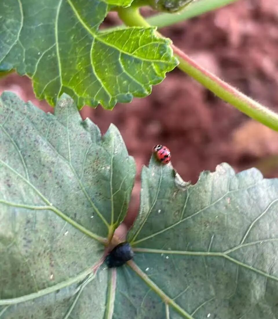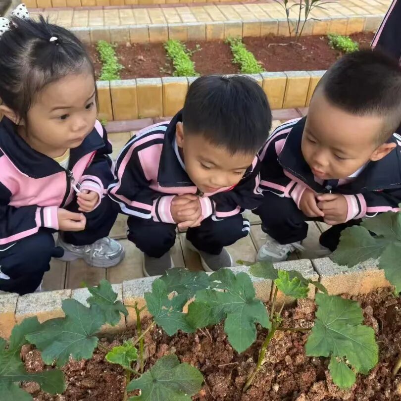 种植区秋葵叶子上披着红色带黑点“外衣”的七星瓢虫,成了孩子们的新宠。我们通过绘本共读的方式,了解七星瓢虫的特点,知道它是庄稼的好朋友,能吃掉破坏庄稼的蚜虫。