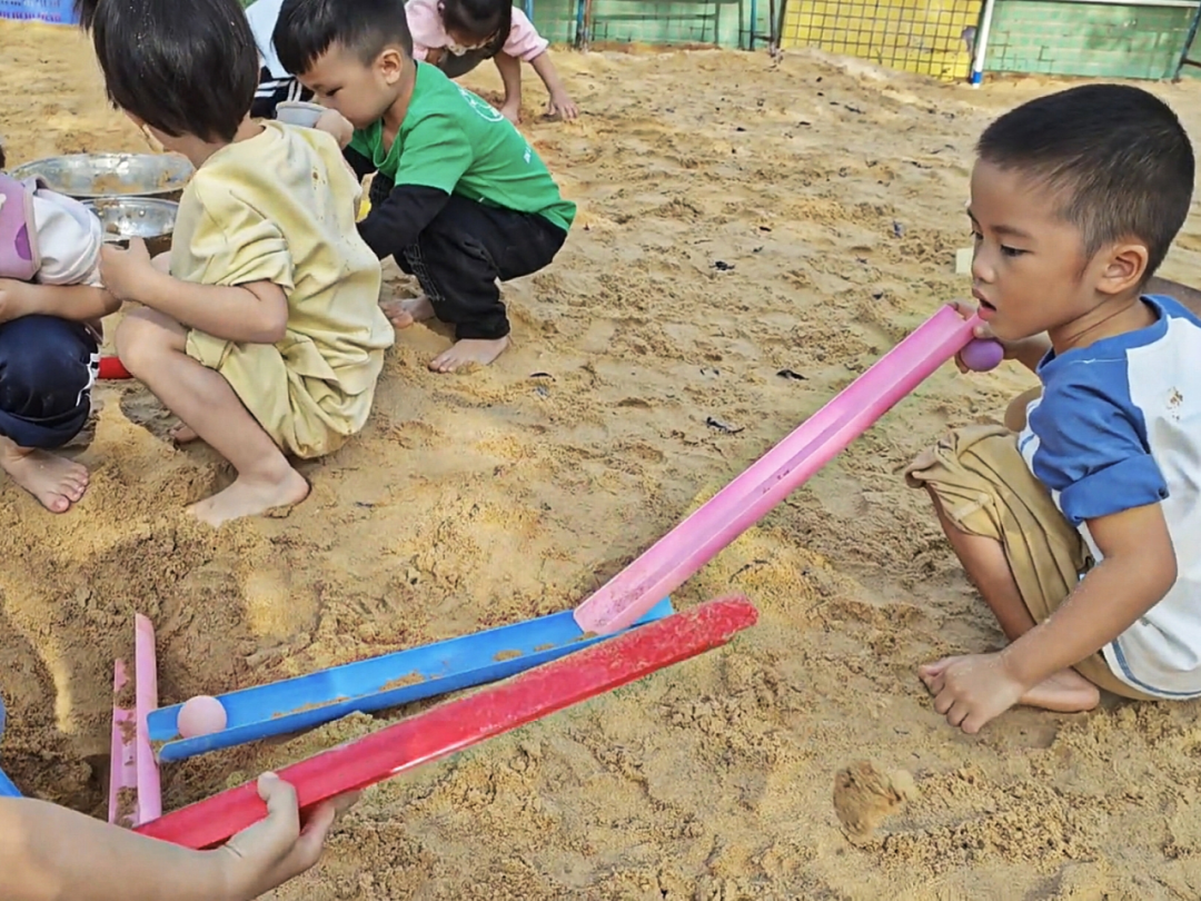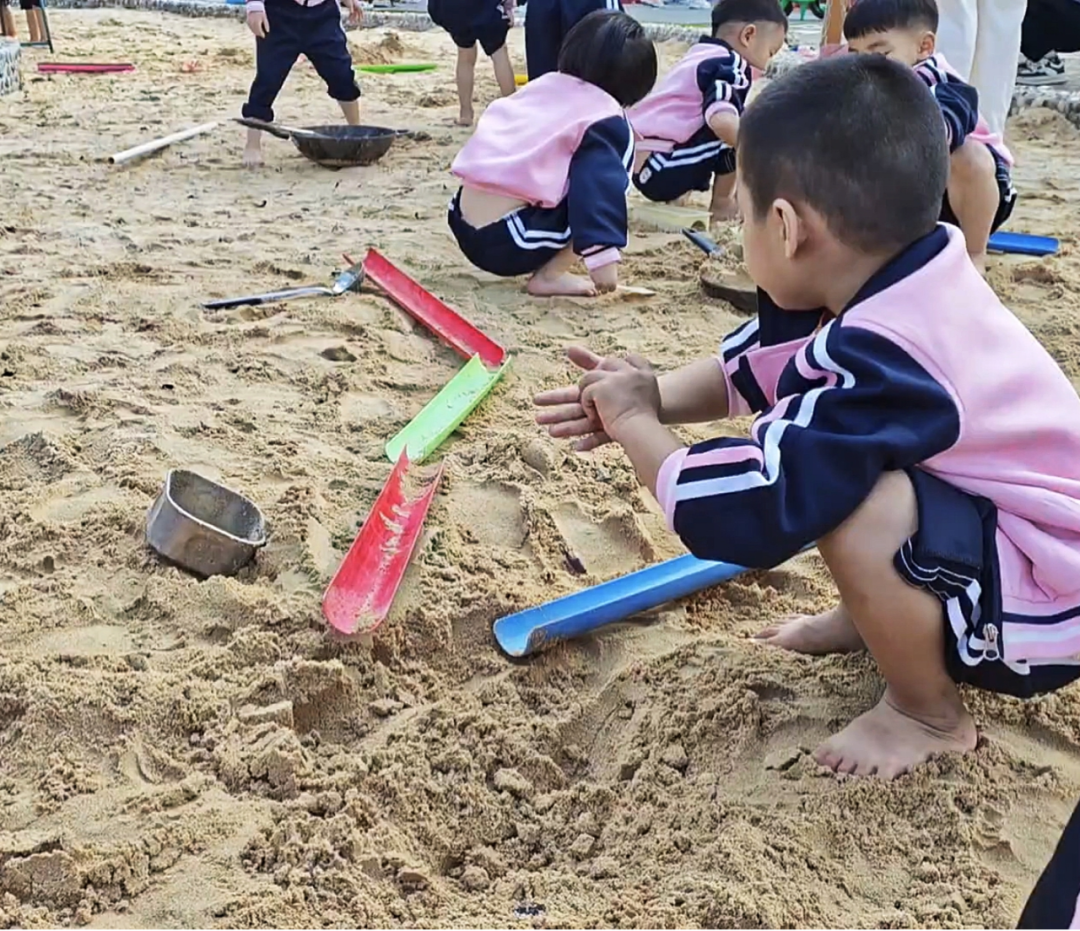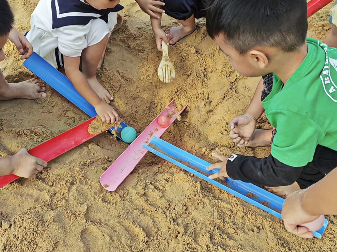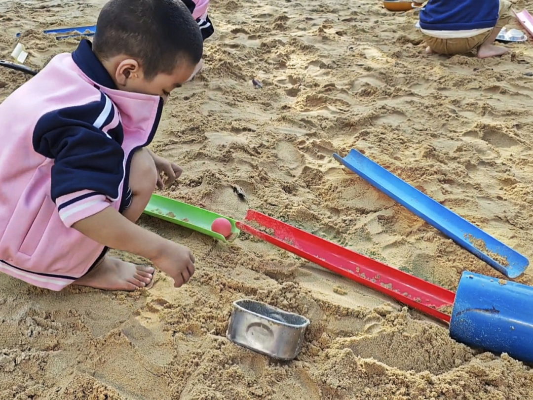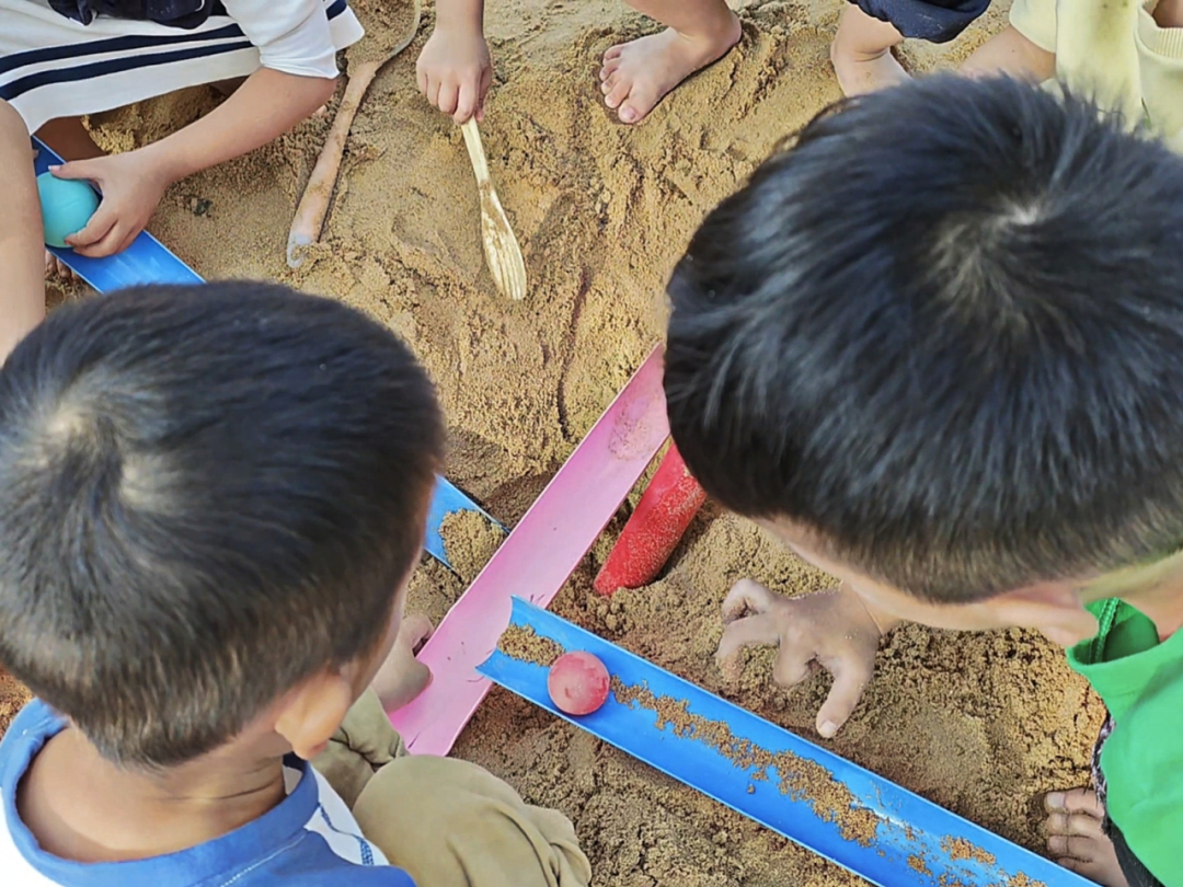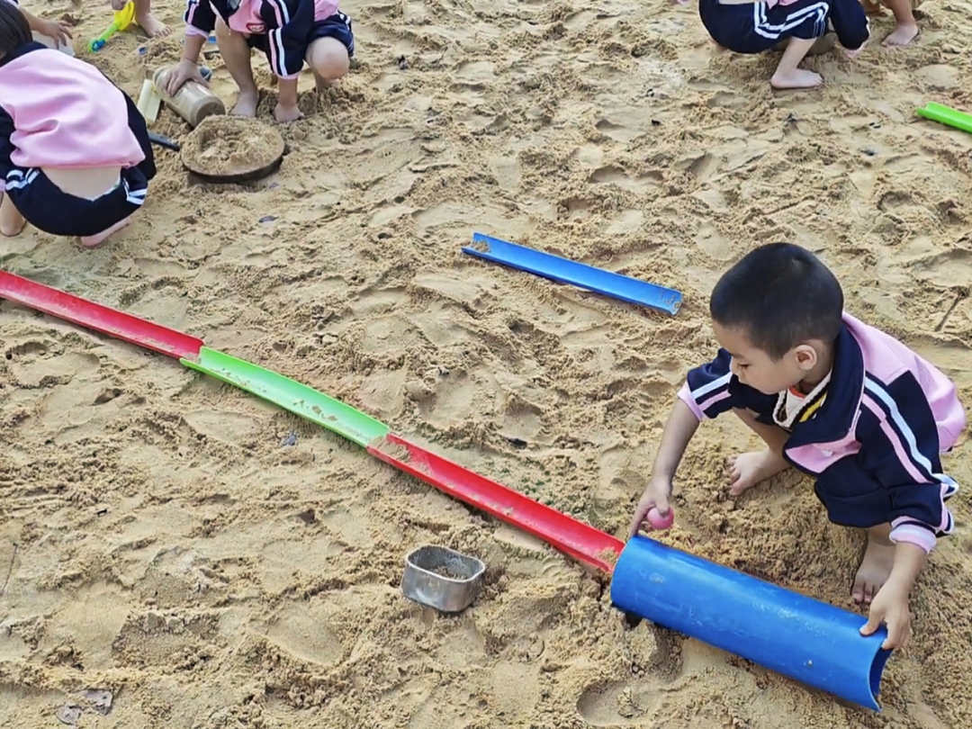 幼儿在游戏中自发形成“测试—调整—再测试”的探究模式,是科学思维萌芽的生动展现。从检查管道衔接、调整摆放角度,到根据沙洞空间改变管道放置方式,幼儿在反复尝试中,潜移默化地感知坡度、空间位置、管道衔接度与小球滚动轨迹之间的关联,这种自主探究远比被动接受知识更具教育价值。同时,幼儿面对困难不放弃的毅力,也为其持续开展科学探究奠定了良好的意志基础。