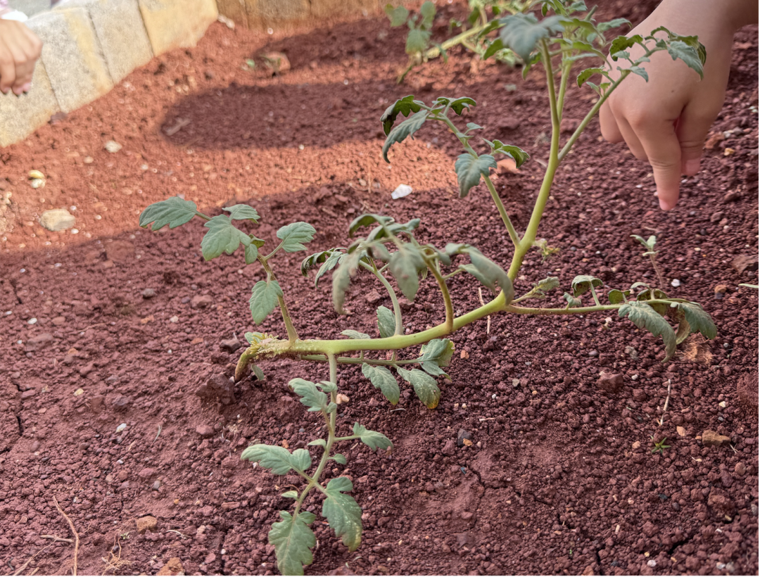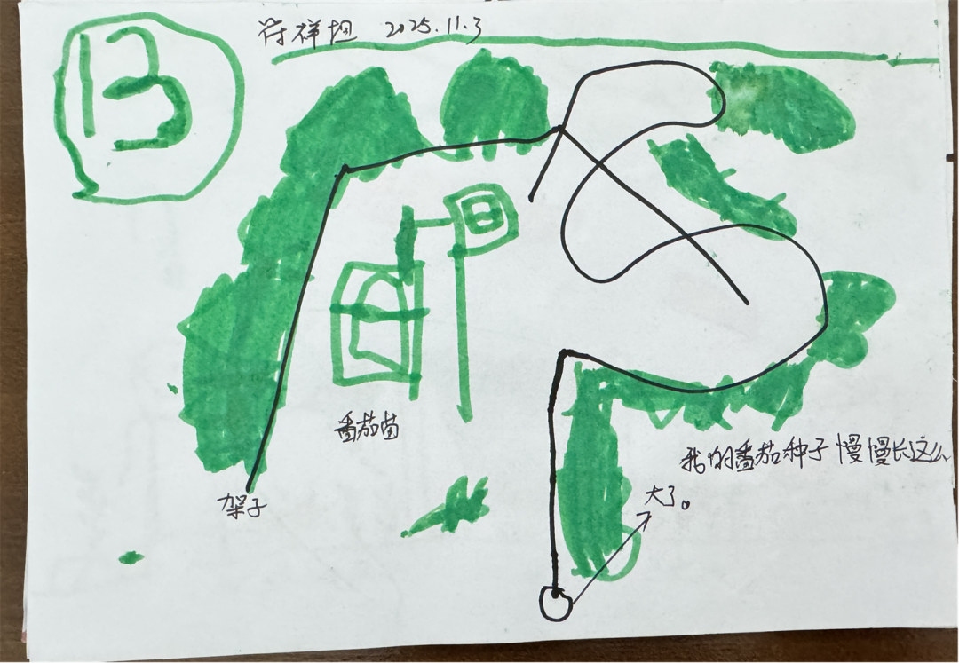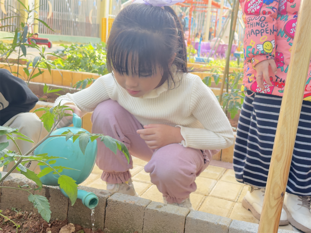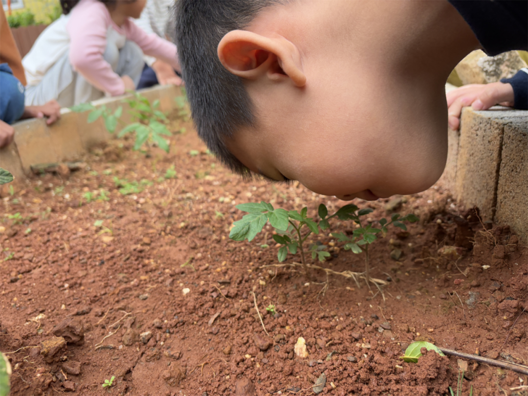 “我想让种子长出果实!”带着这份期待,孩子们开启了西红柿种植之旅。从翻土、挖坑,到放入幼苗、浇水压实,每一个步骤都亲力亲为。孩子们轮流担任“植物小管家”,每天细心观察西红柿的生长变化,及时浇水、松土、除草,在耕耘中体会劳动的乐趣,懂得珍惜与坚持。