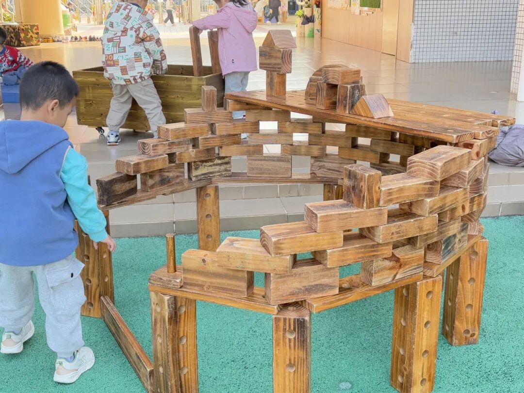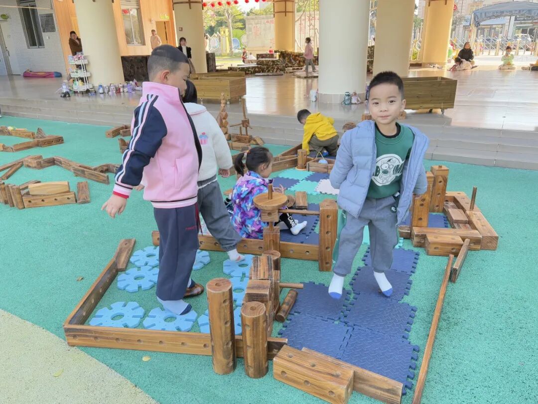 1.合作交往能力凸显:幼儿自主组队分工:搬运、搭建、规划等,同伴间主动互助,协作能力贴合中班发展需求。