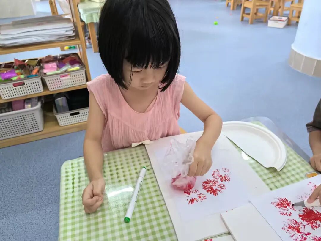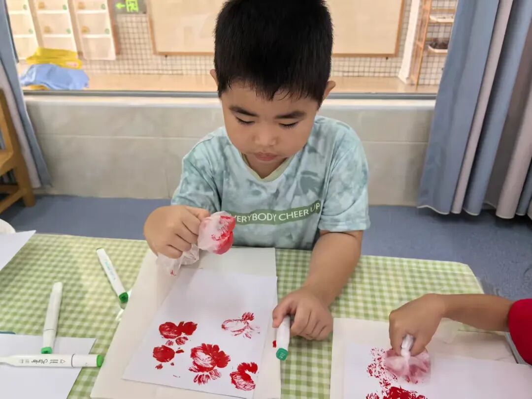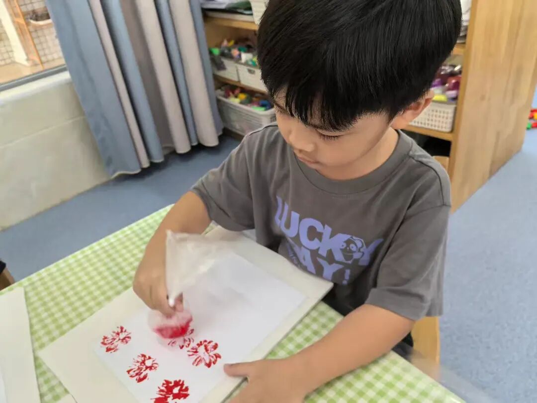 宝贝们通过袋子与颜色的碰撞,用袋子进行拓印出天然的肌理纹路效果,似烟花、似海洋……