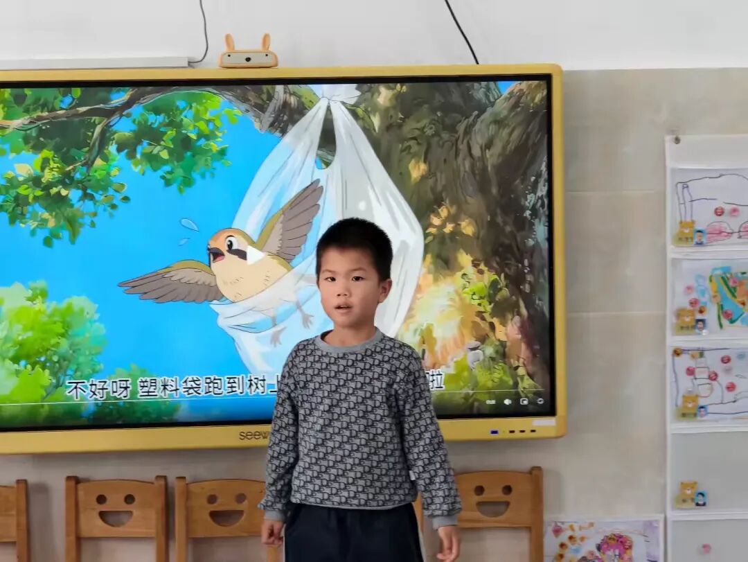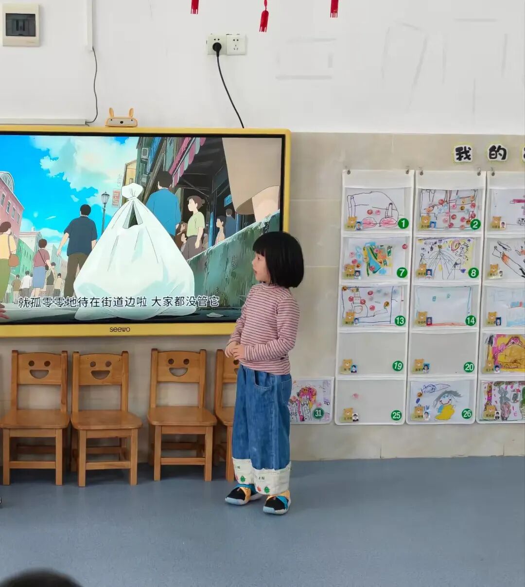 教师小结:今天我们一起阅读了《流浪的塑料袋》这本温暖又有意义的绘本,跟着塑料袋一起经历了它的流浪之旅。我们知道了,塑料袋被随意丢弃后,会飘到草地上、小河里,污染我们的家园,还会伤害小动物们。其实,塑料袋本身并不可怕,可怕的是我们随意丢弃它的坏习惯。希望今天过后,每个小朋友都能做一名合格的环保小卫士:平时尽量不用一次性塑料袋,用过的塑料袋要记得分类放进可回收物垃圾桶,不让它们再四处流浪。