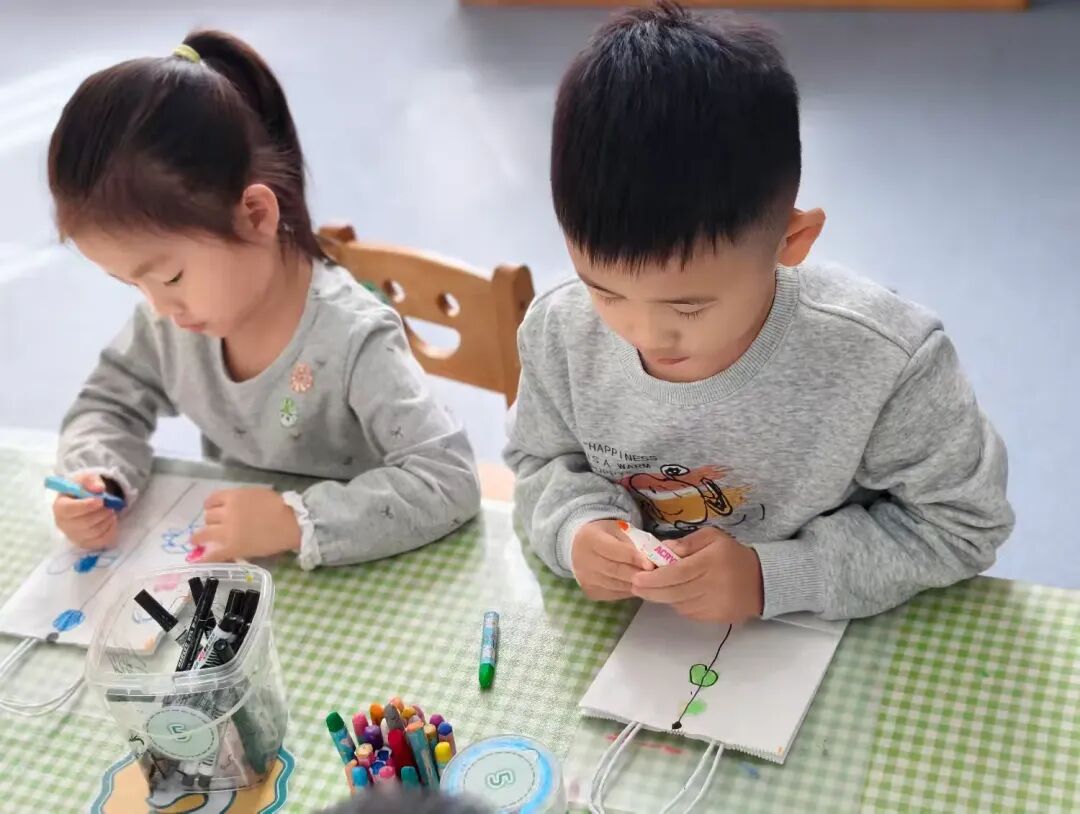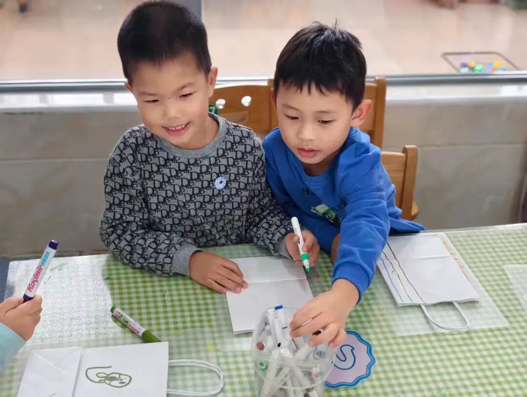 宝贝们设计漂亮的袋子,于是畅聊起自己想设计的袋子,一起变成了“袋子设计师”。
