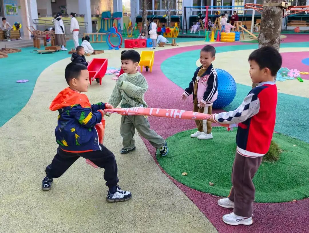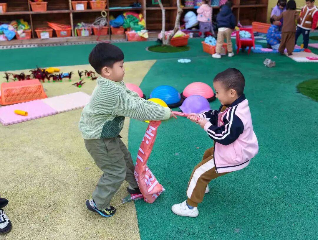 利用袋子的韧性,宝贝们进行拔河比赛。