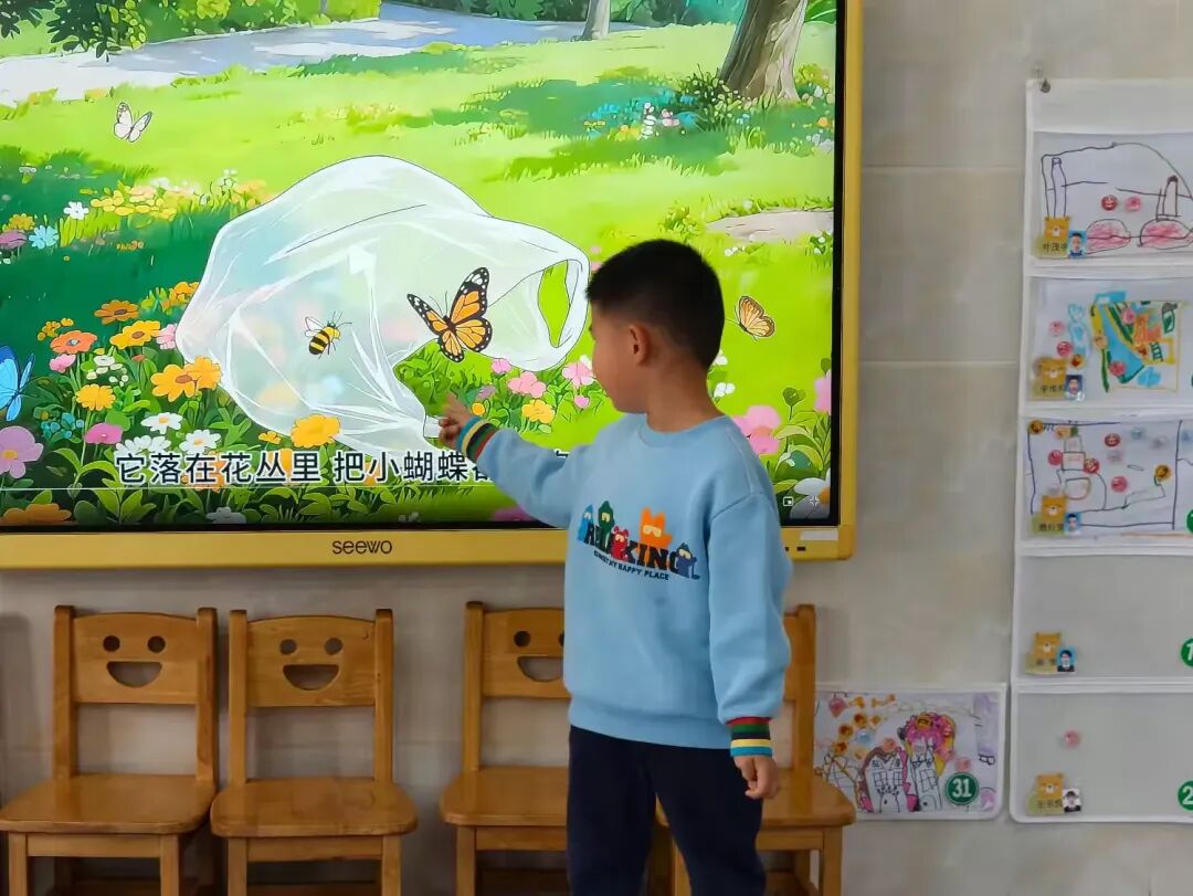 星尧:“塑料袋飘进了公园,把小蝴蝶吓跑了。”