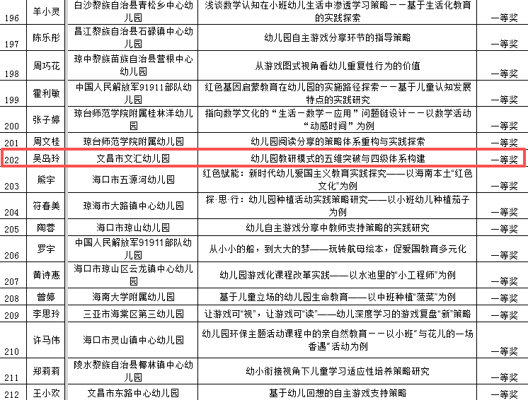 吴岛玲:文昌市文汇幼儿园——幼儿园教研模式的五维突破与四级体系构建