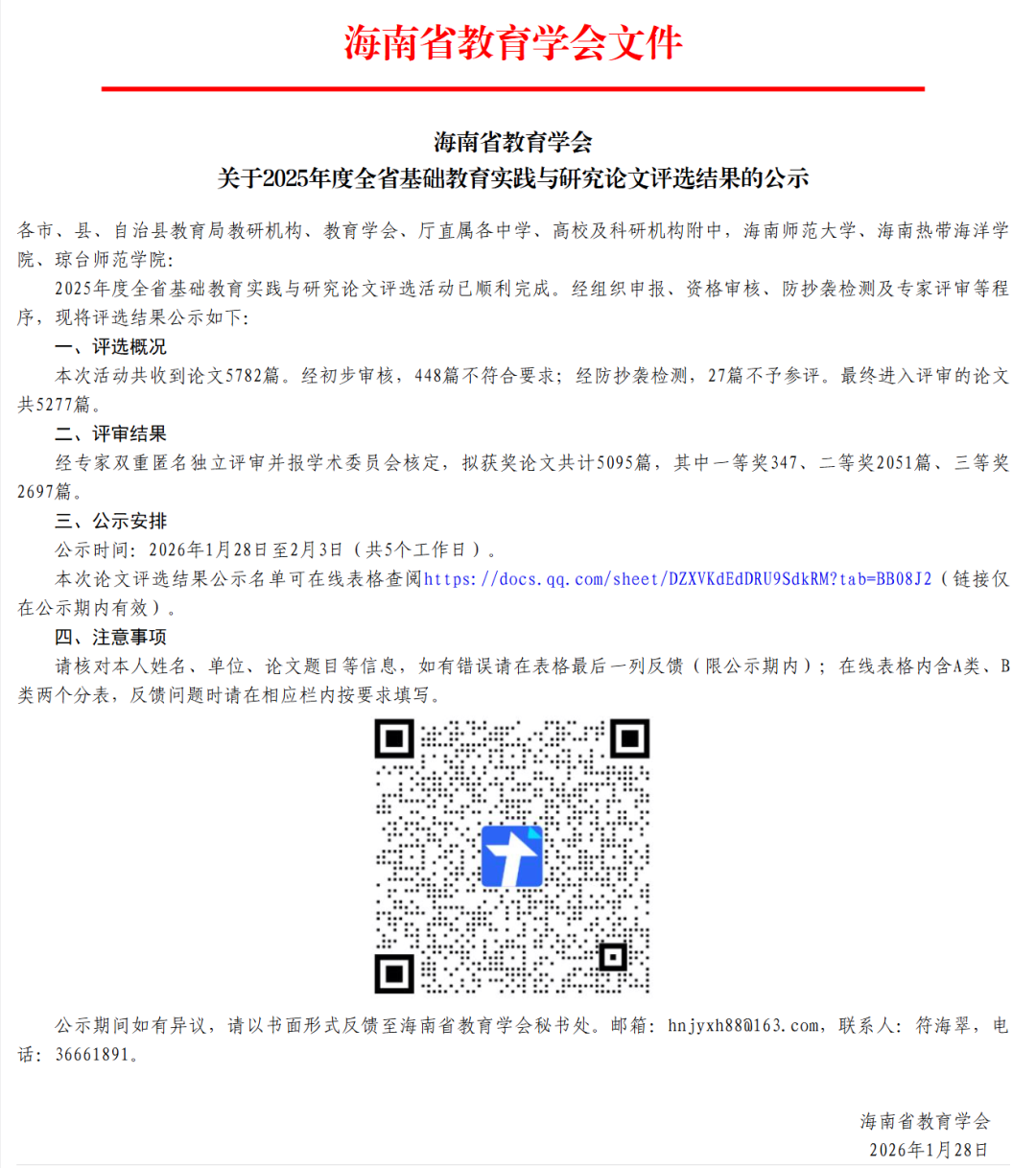 热烈祝贺我园教师吴岛玲、符小雨在2025年度全省基础教育实践与研究论文评选结果活动中荣获佳绩!