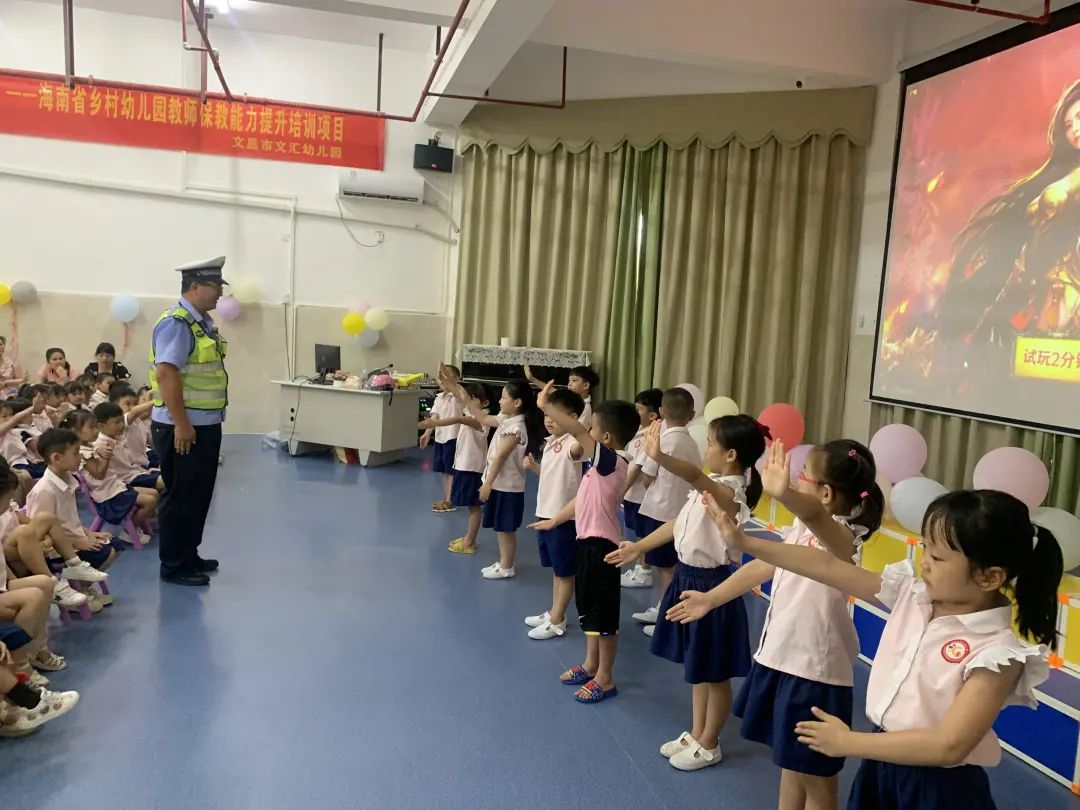 为进一步提升广大在校儿童道路交通安全意识,有效预防和减少儿童道路交通事故。5月31日下午,恰逢六一前夕,文昌市公安局交通警察大队的张警官,来到文昌市文汇幼儿园开展——《守护安全,“童”行中国》主题宣传活动,为中大班的小朋友们和老师们送上了一堂精彩的交通安全知识教育课。