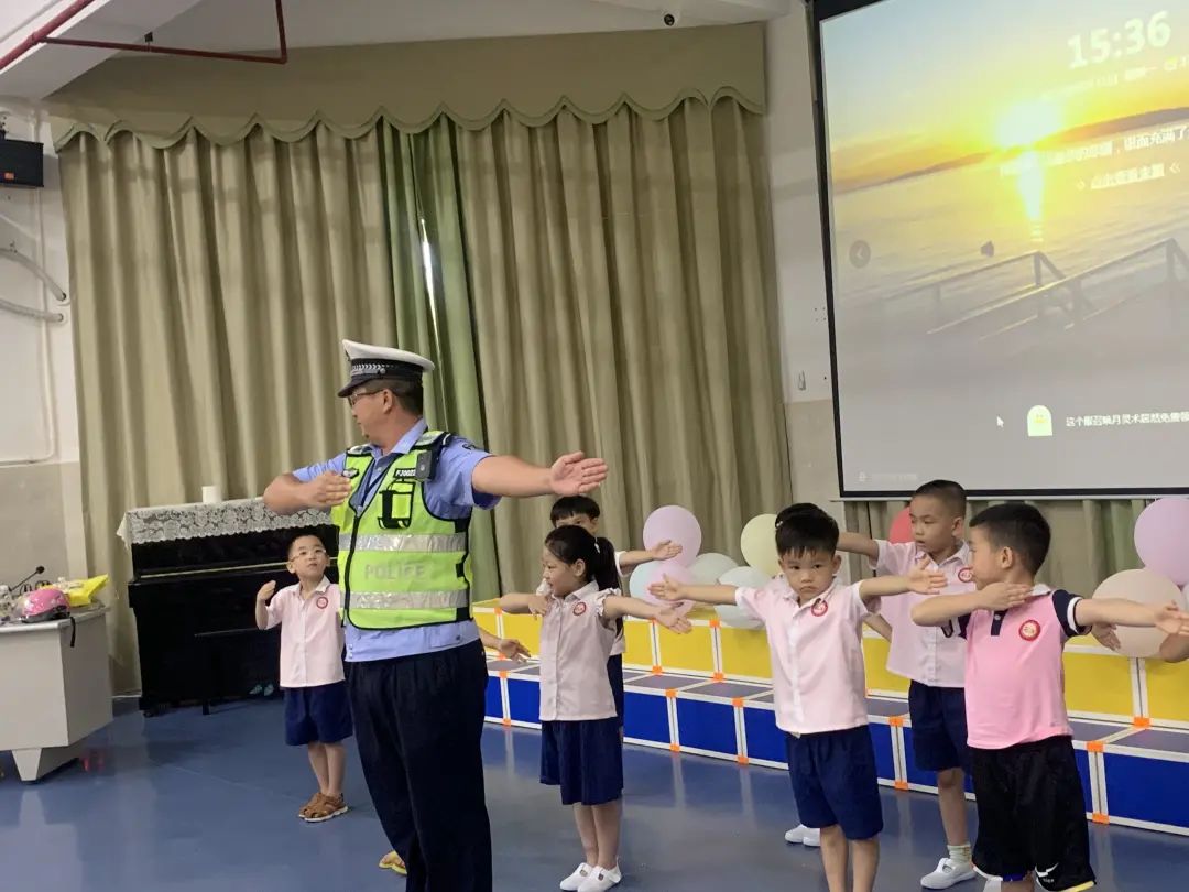 堂上,小朋友们跟着交警叔叔现场学习了一些常见的交通指挥手势,这也进一步加深了小朋友们对交通安全知识的印象,让小朋友们真正感受到遵守交通法律法规的重要性,养成自觉遵守交通安全法律法规、维护道路交通秩序的良好习惯。