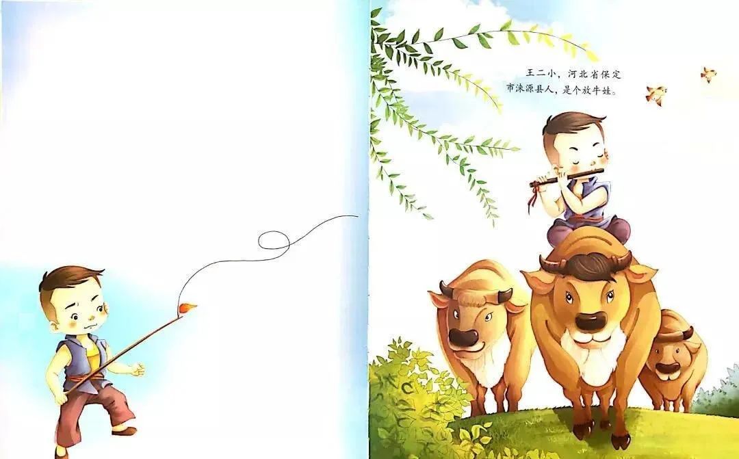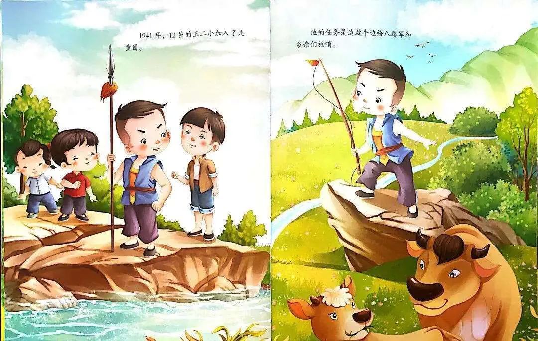 抗日战争时期王二小的家乡是八路军的抗日根据地,经常受到日军的扫荡。王二小是儿童团员,他常常一边在山坡上放牛,一边帮八路军和乡亲们放哨,为了掩护几千名老乡和干部,王二小不顾生命危险把敌人带进了八路军的埋伏圈,敌人知道上了当就杀害了小英雄王二小。