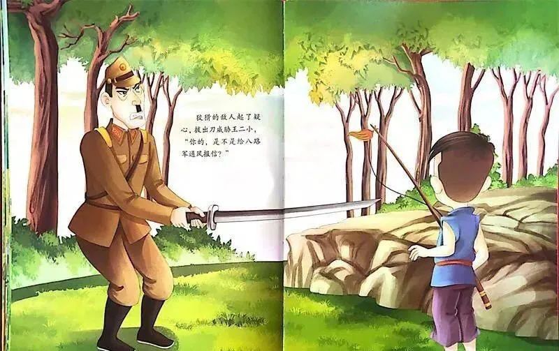 狡猾的敌人起了疑心,拔出刀威胁王二小,“你的,是不是给八路军通风报信?”